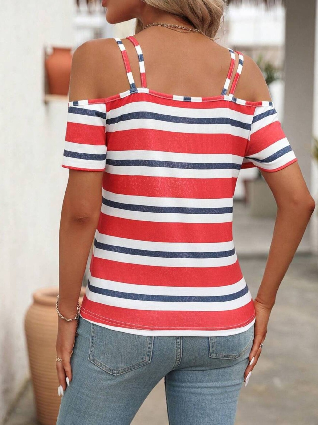 Striped Cold Shoulder T-Shirt