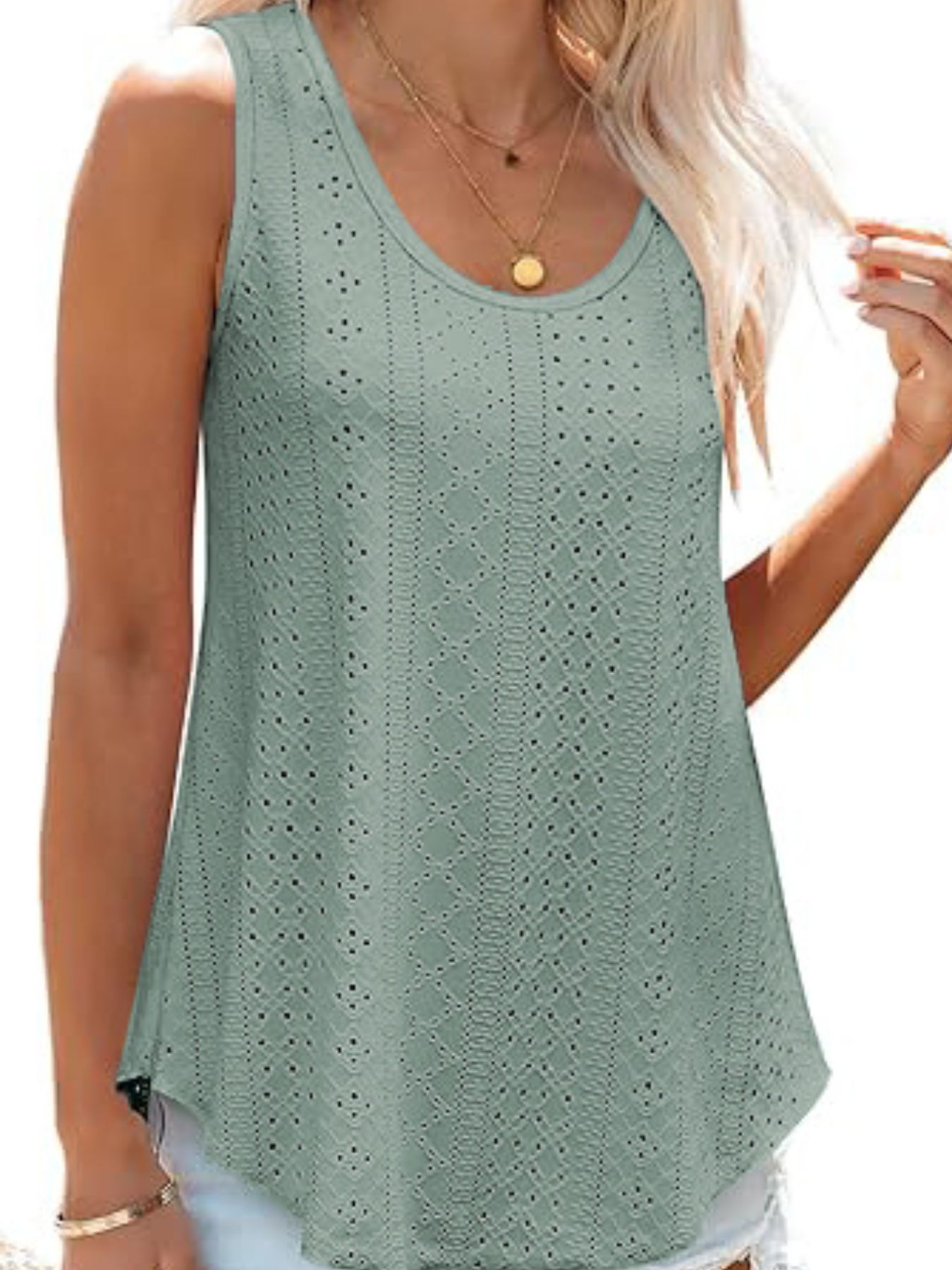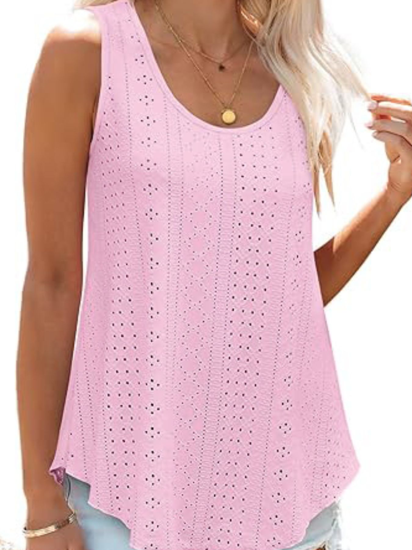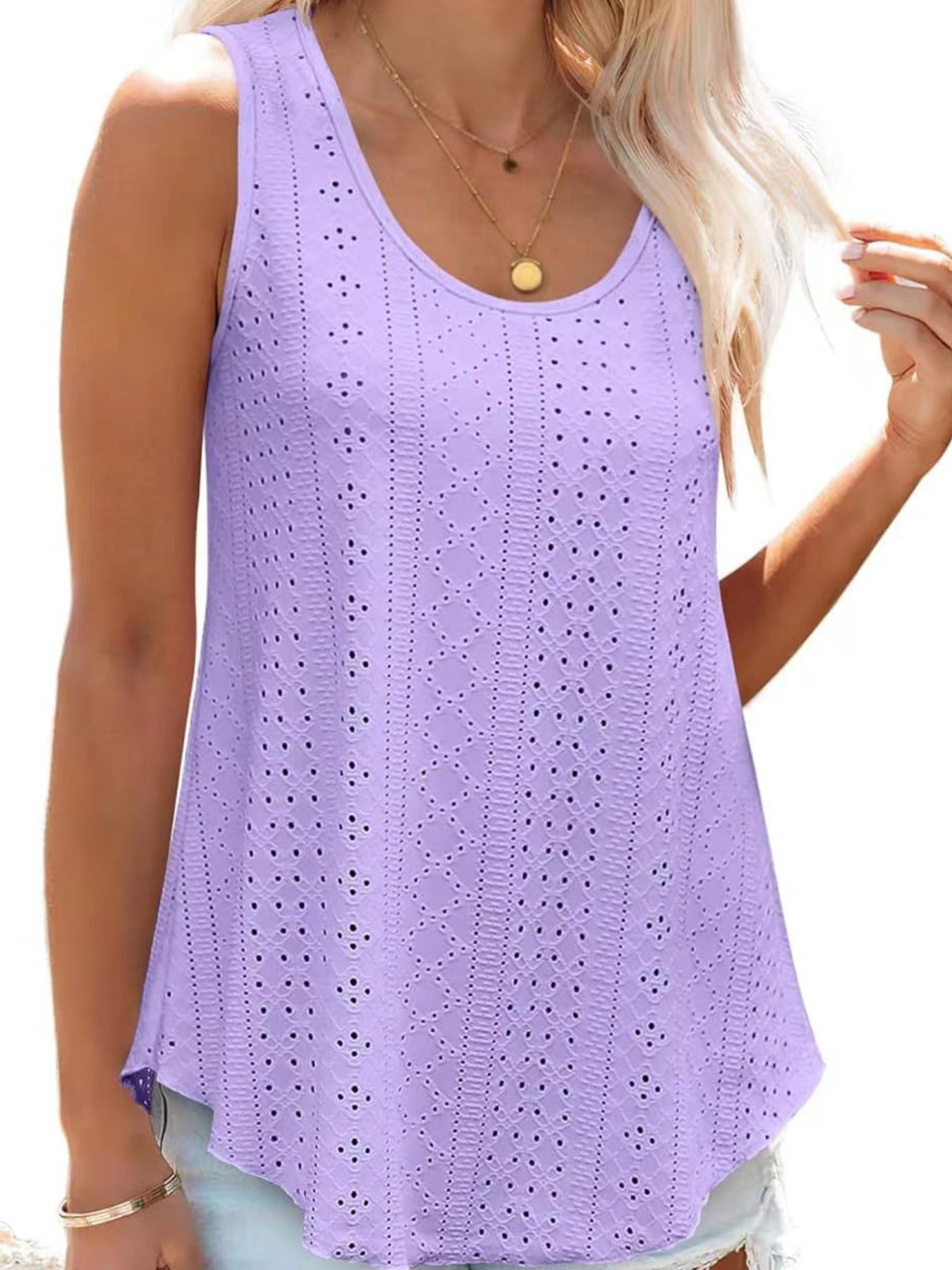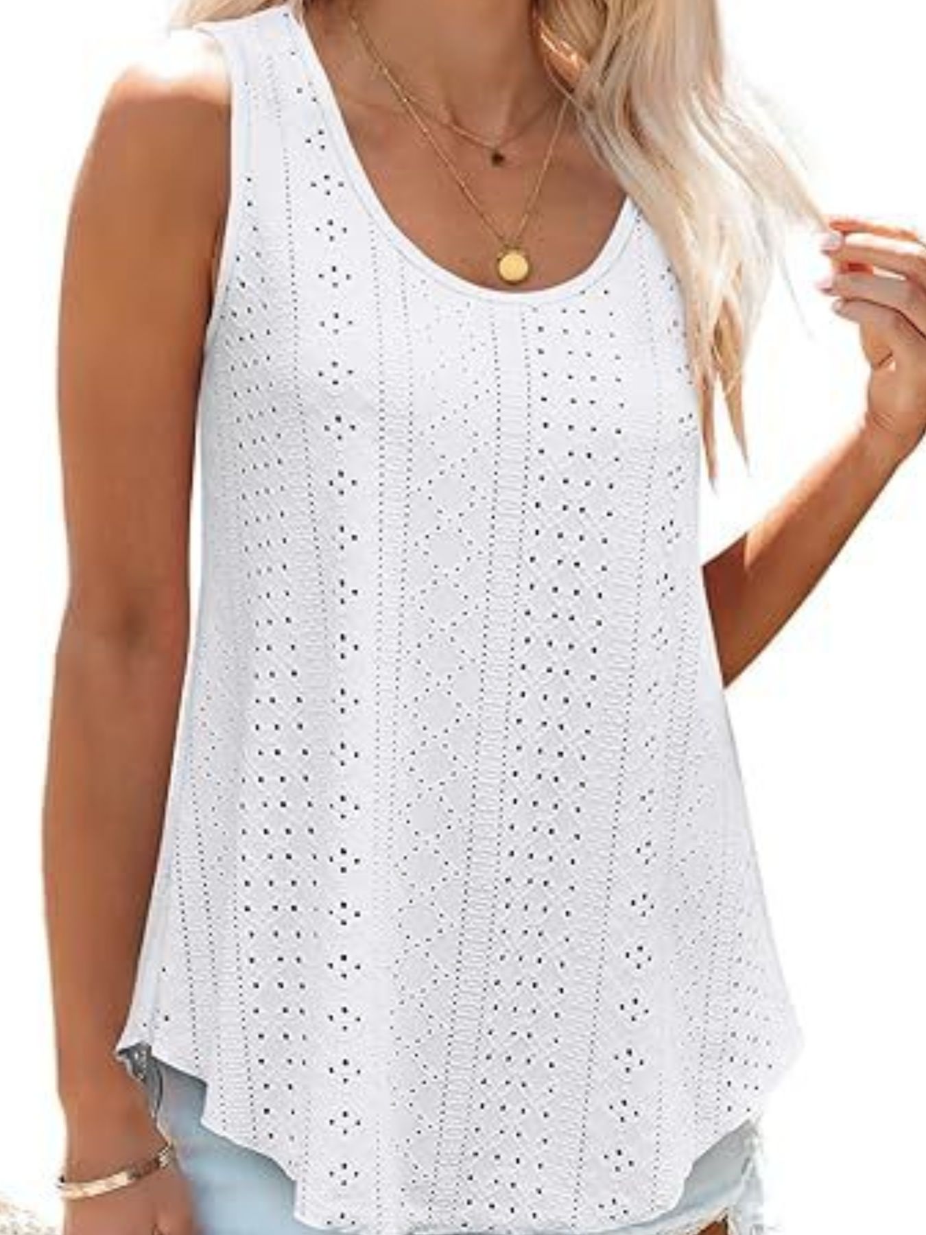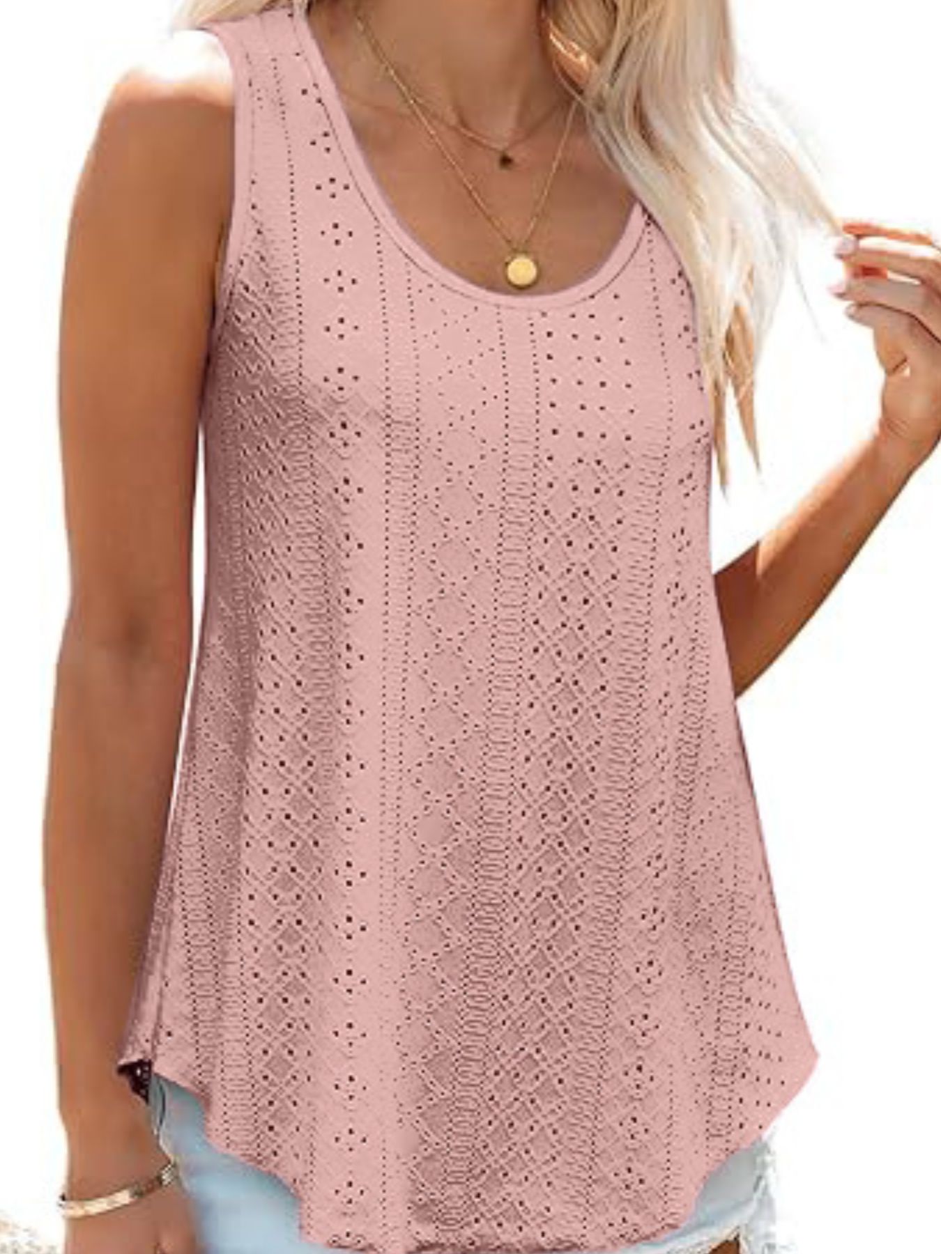 Eyelet Scoop Neck Tank