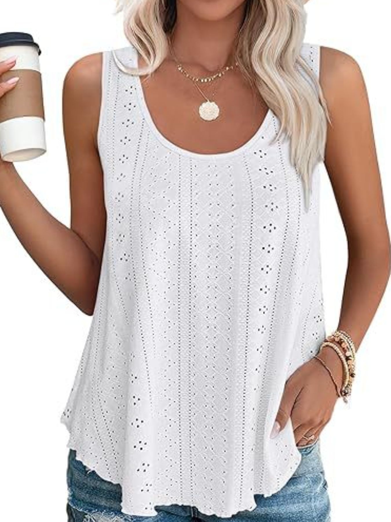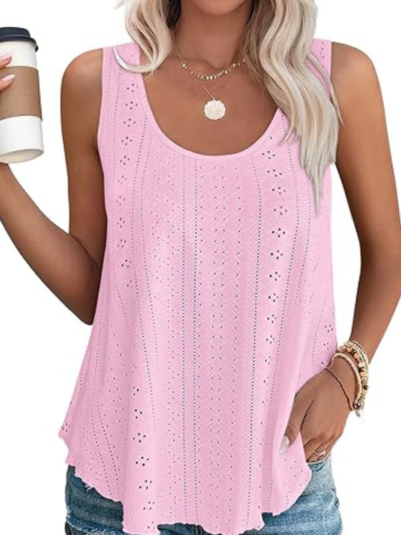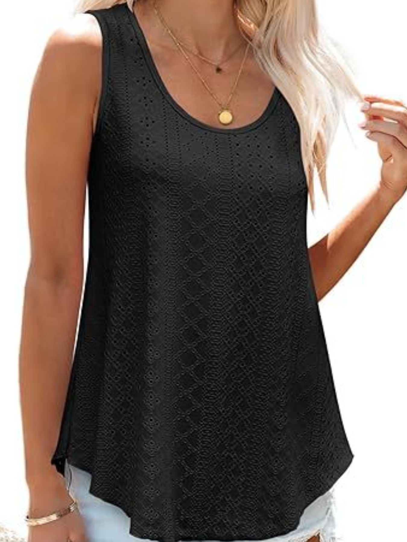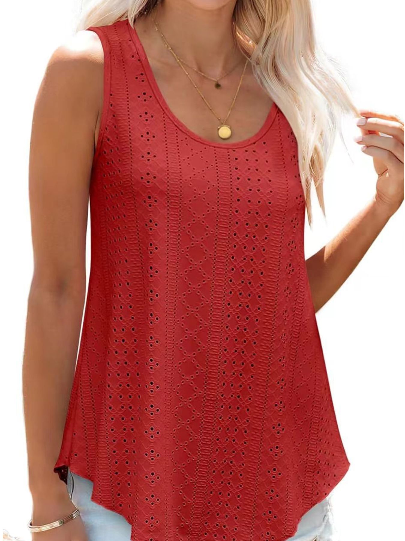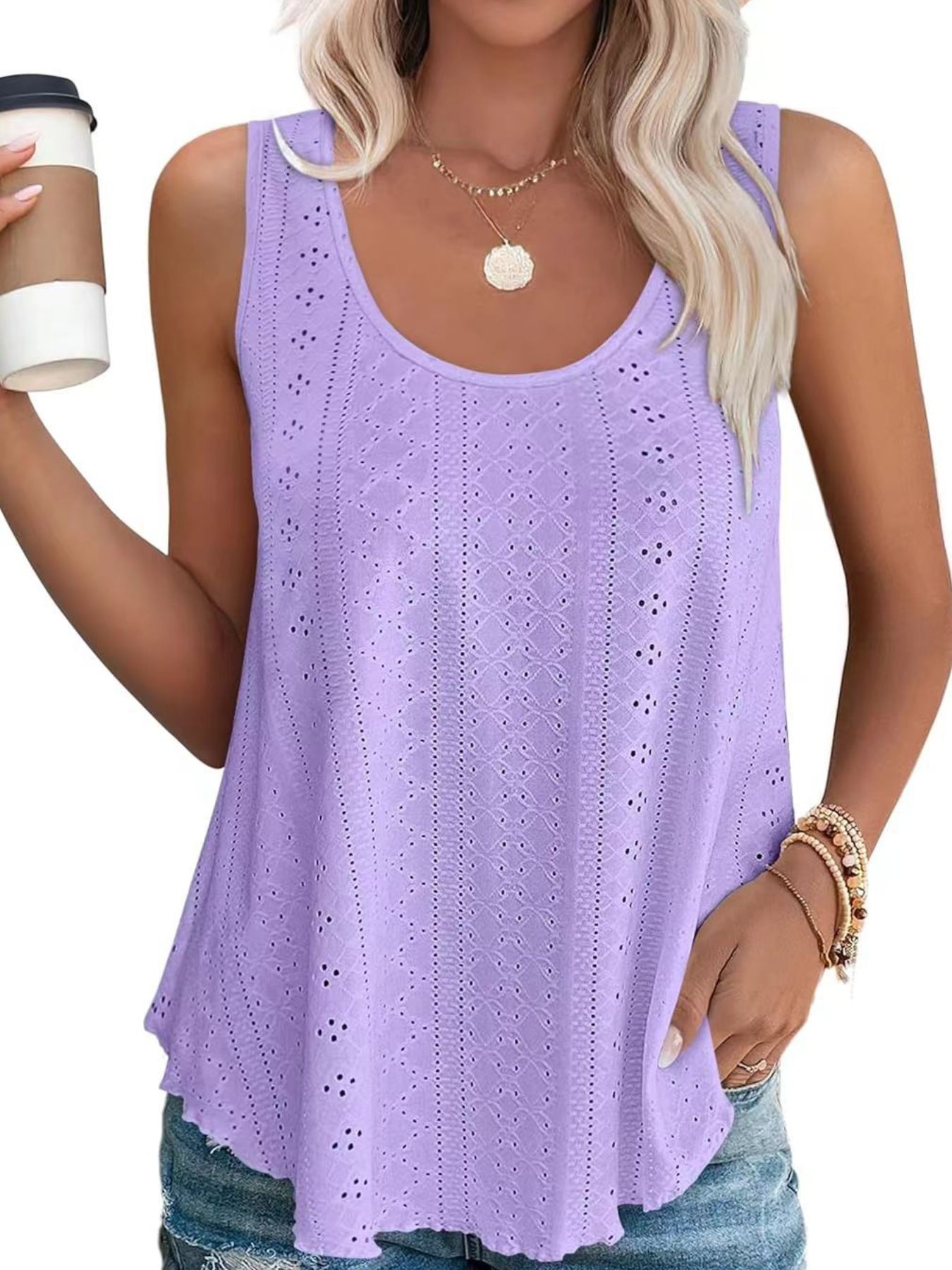 Eyelet Scoop Neck Tank