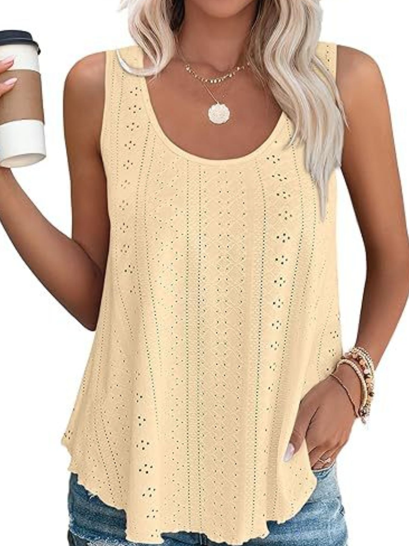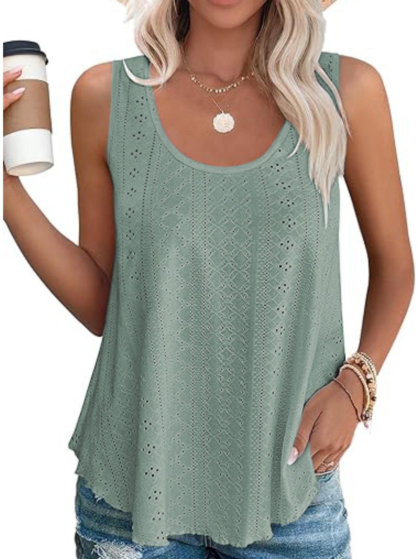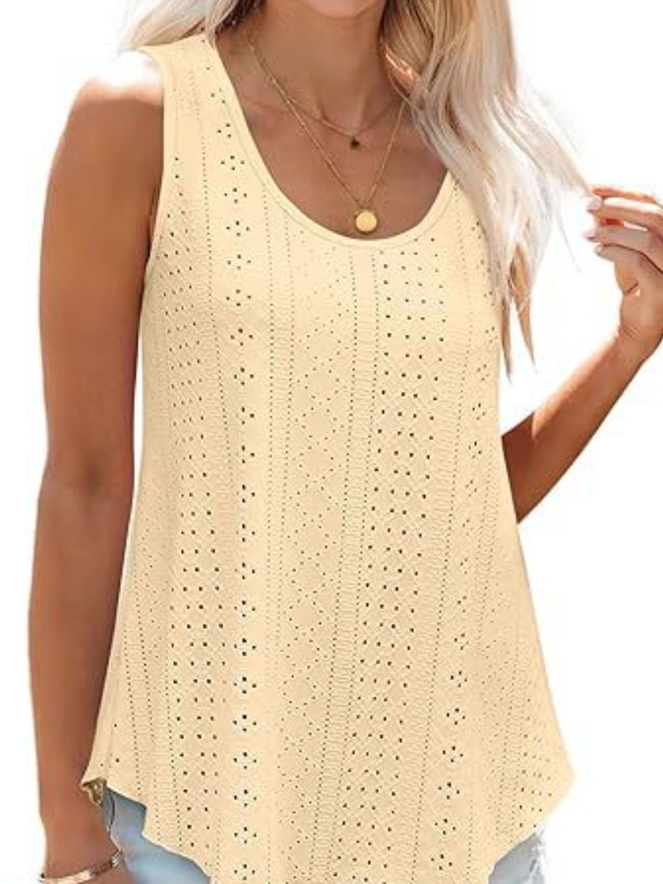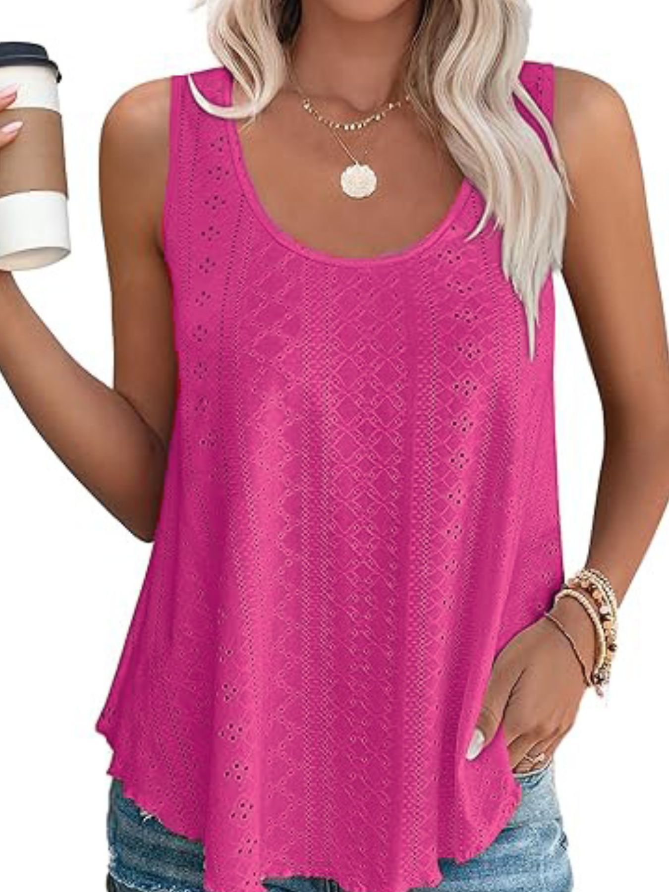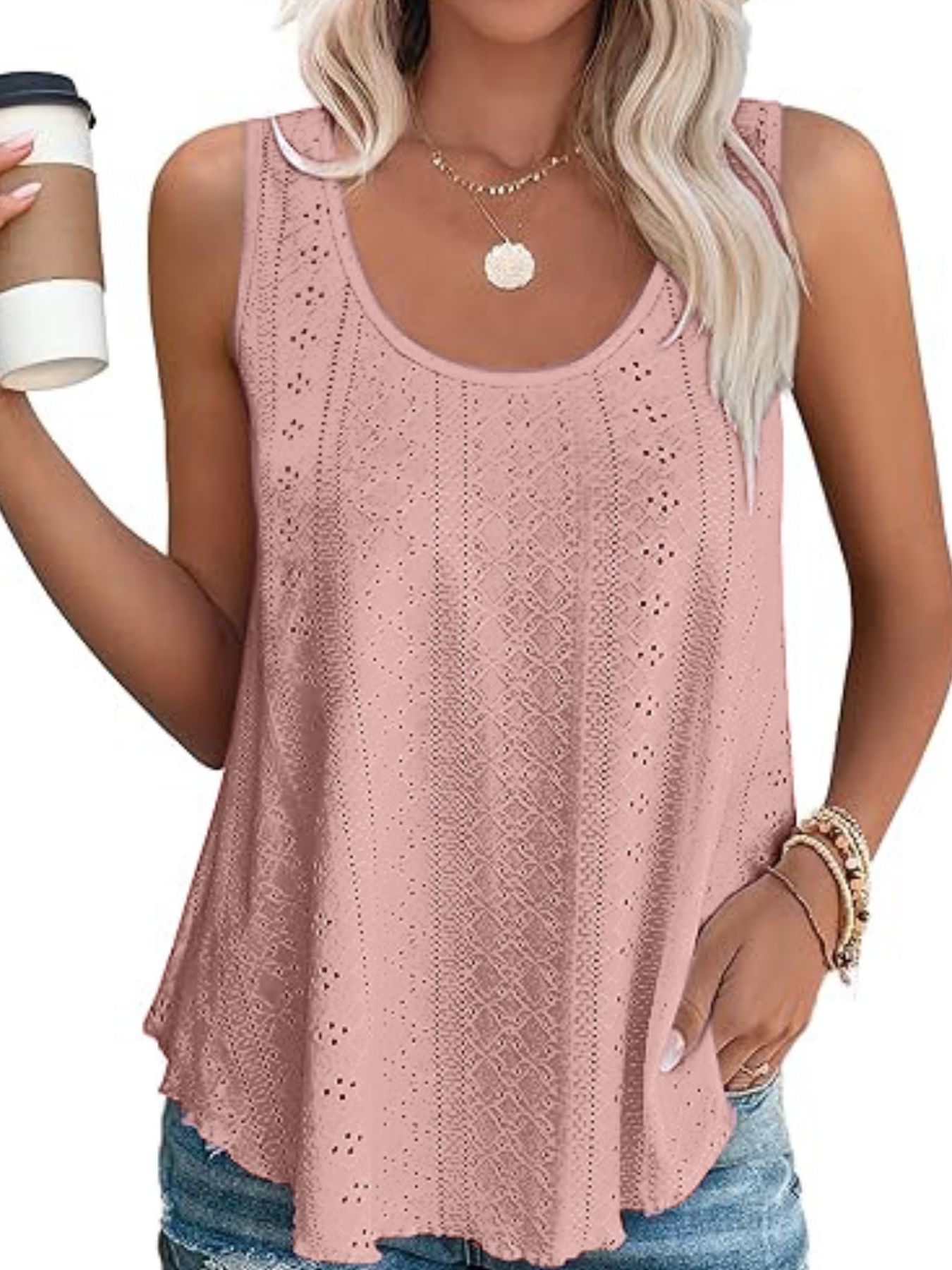 Eyelet Scoop Neck Tank