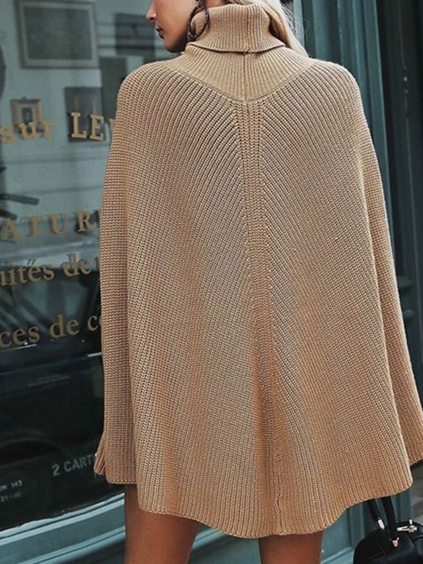 Turtleneck Knitted Cape Sweater