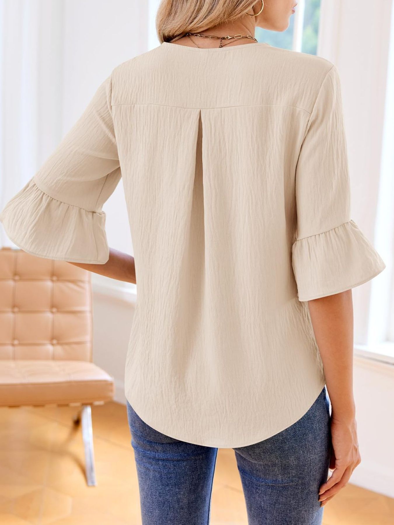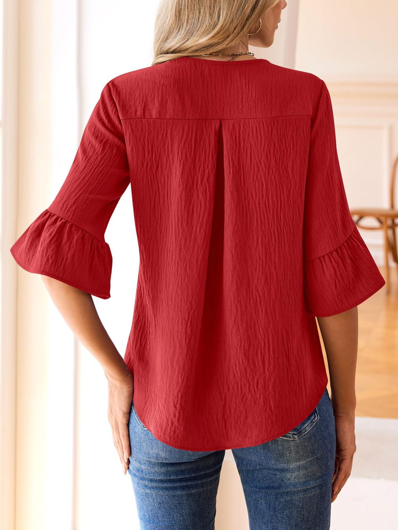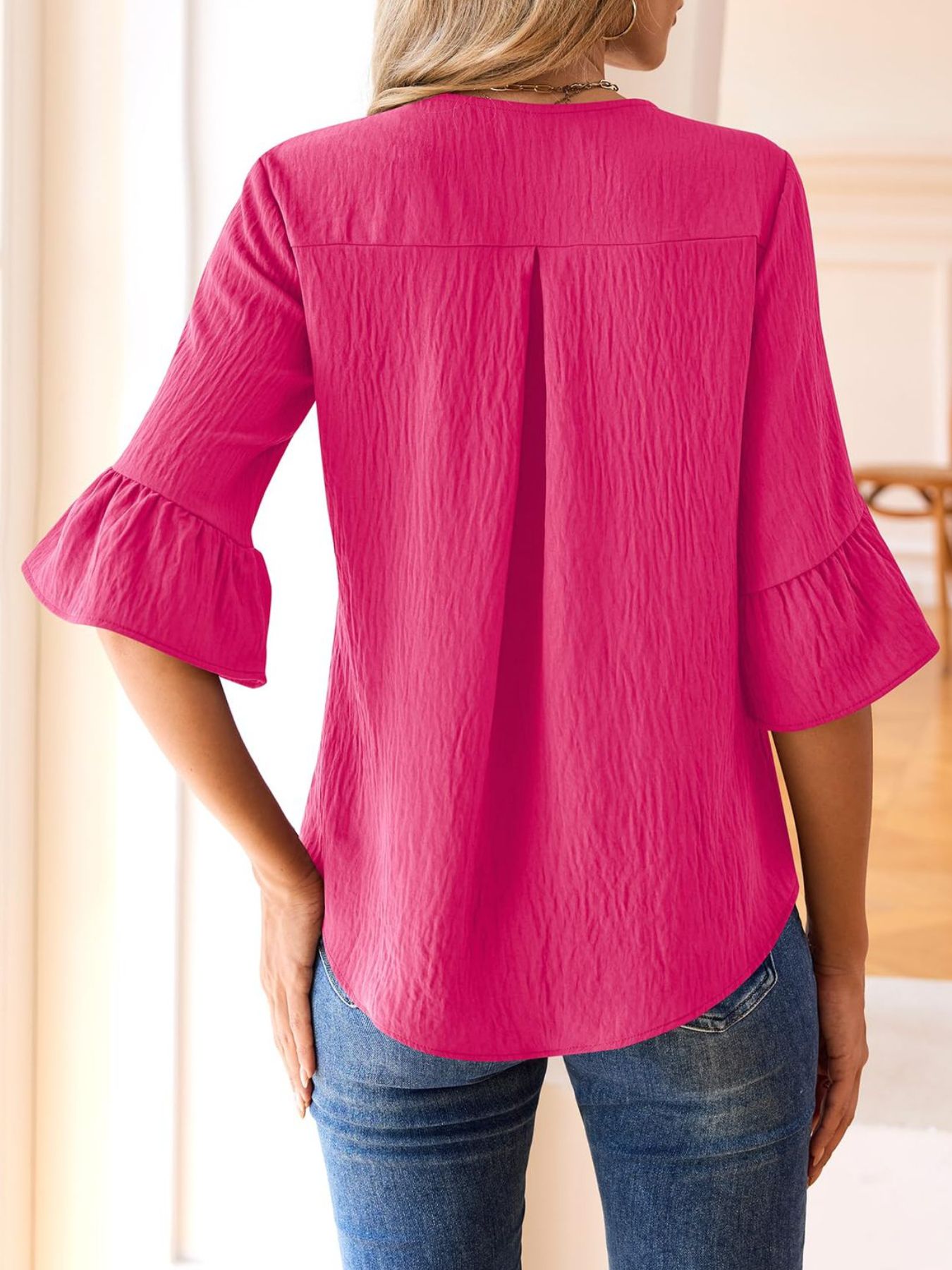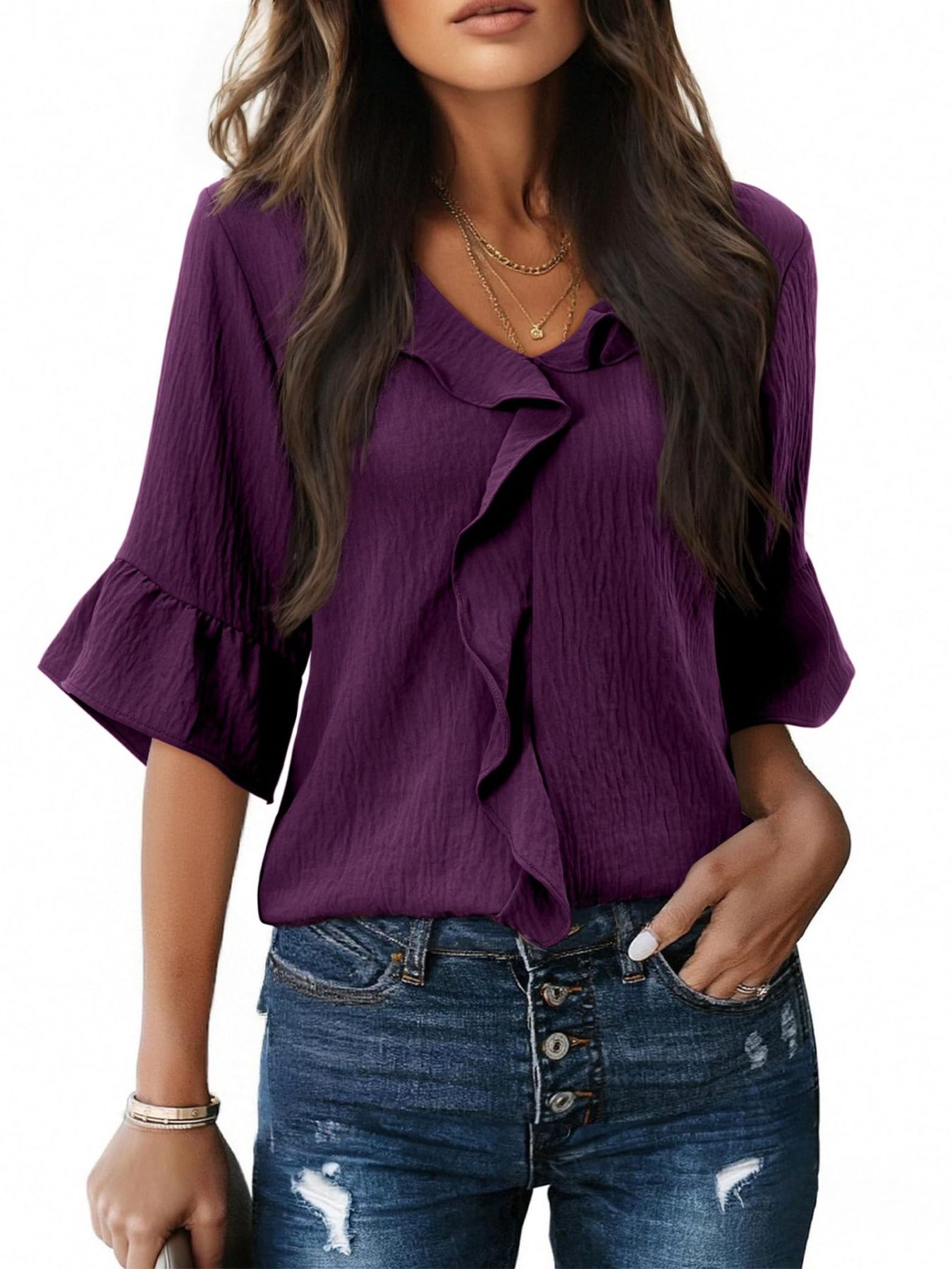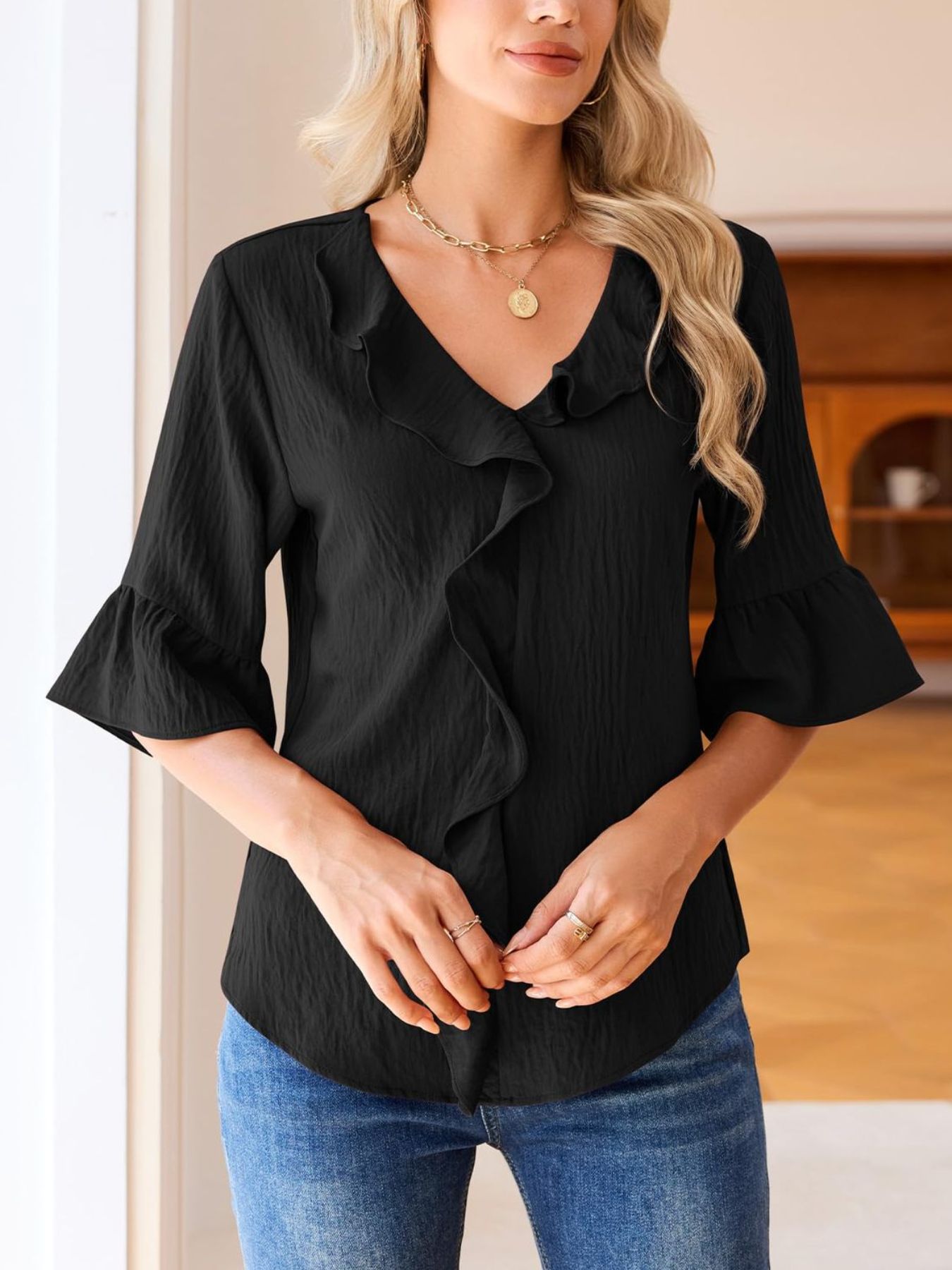 Ruffle V-Neck Flounce Sleeve Blouse