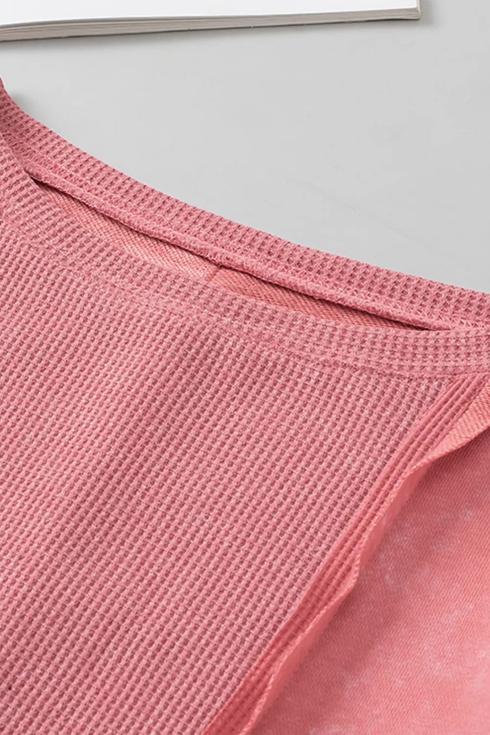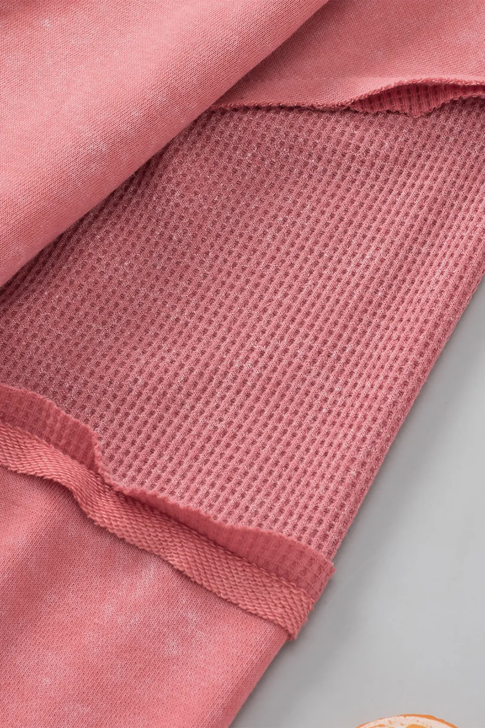 Waffle-Knit Round Neck Long Sleeve Sweatshirt