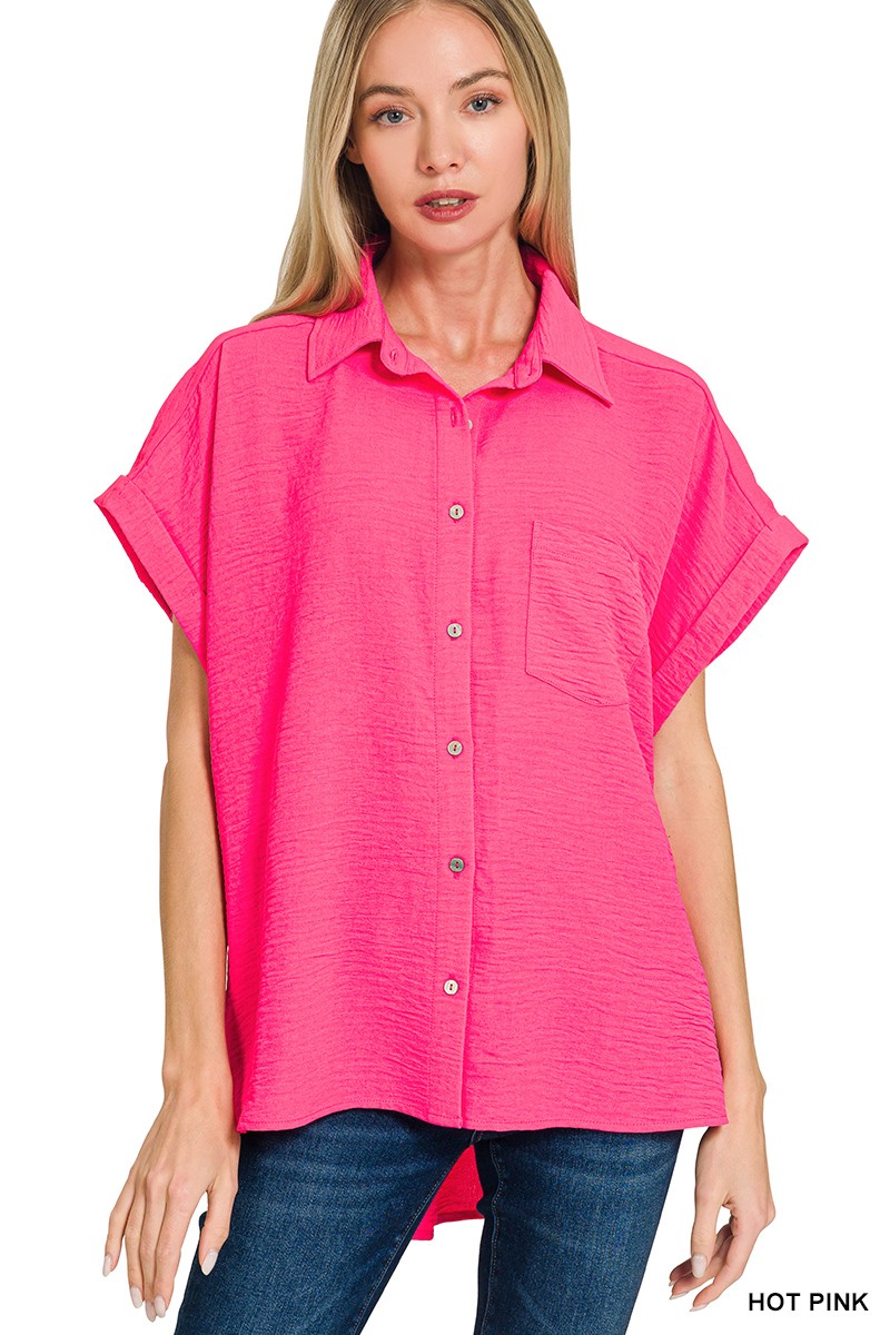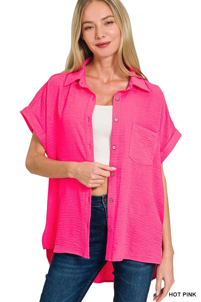 Zenana Woven Airflow Button Down Shirt