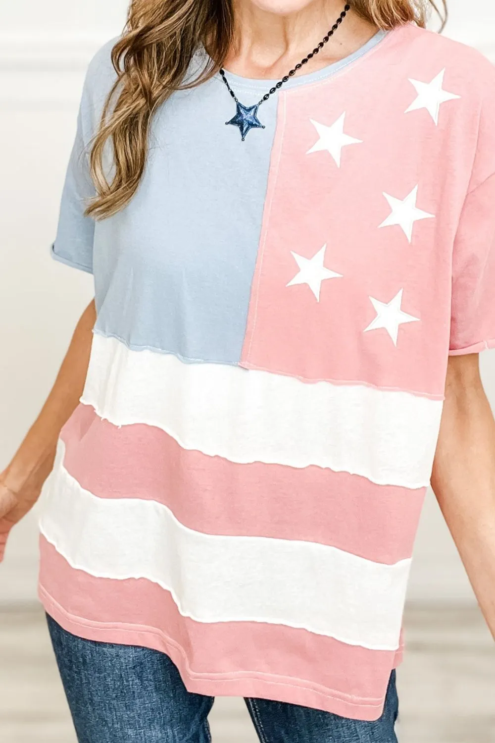 Patriotic Star Color Block T-Shirt