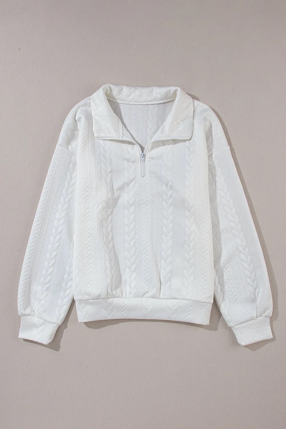Textured Quarter Zip Long Sleeve Sweatshirt