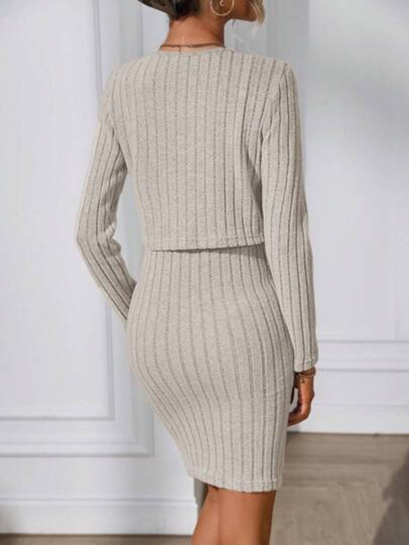 Ribbed Knit Bodycon Cami Dress With Cardigan