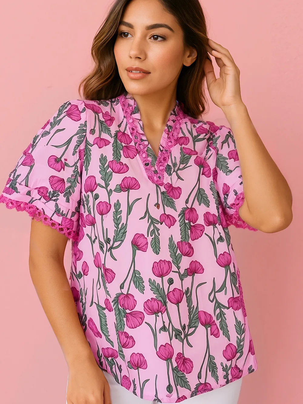 Floral Notched Short Sleeve Blouse