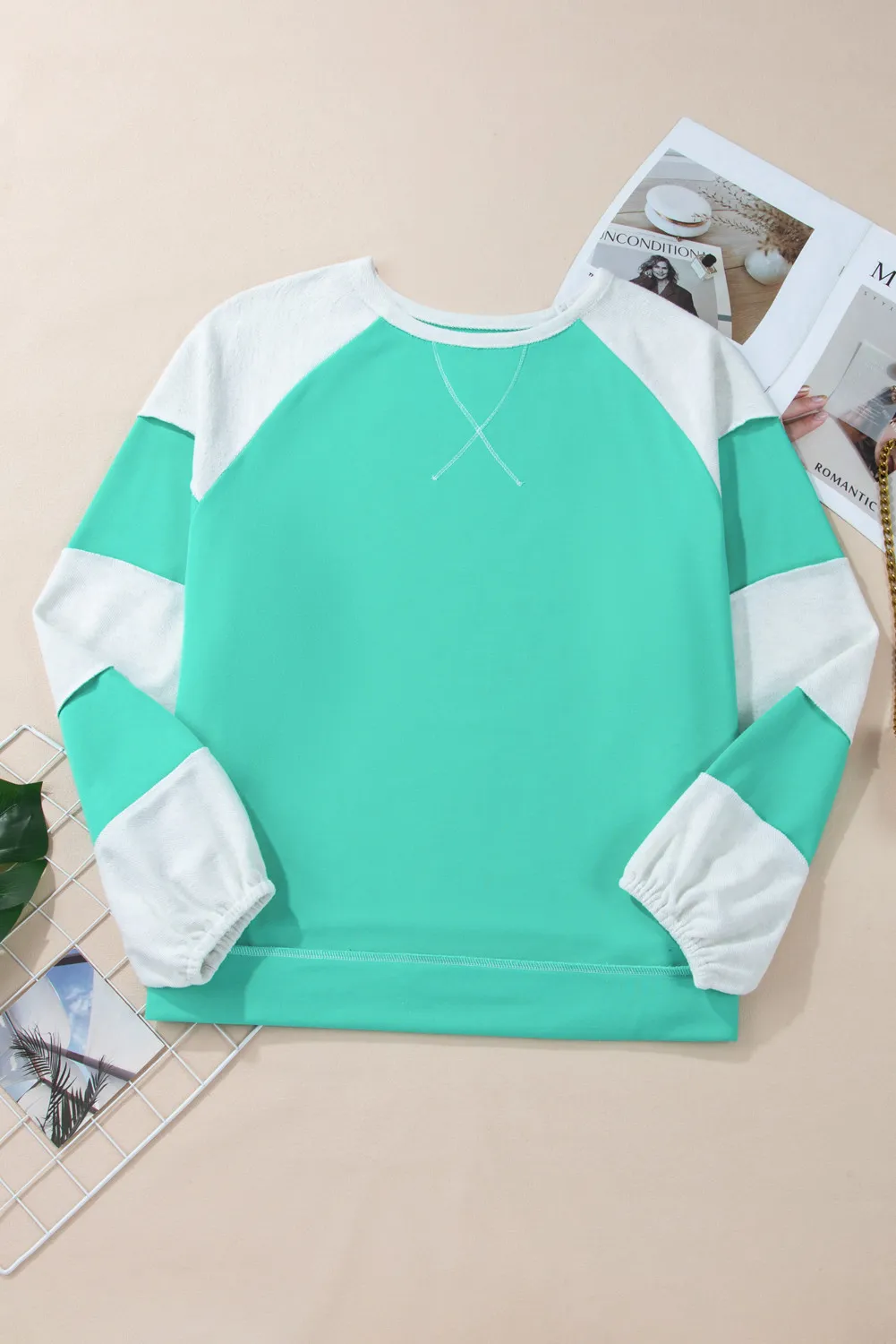 Plus Size Exposed Seam Color Block Long Sleeve Sweatshirt