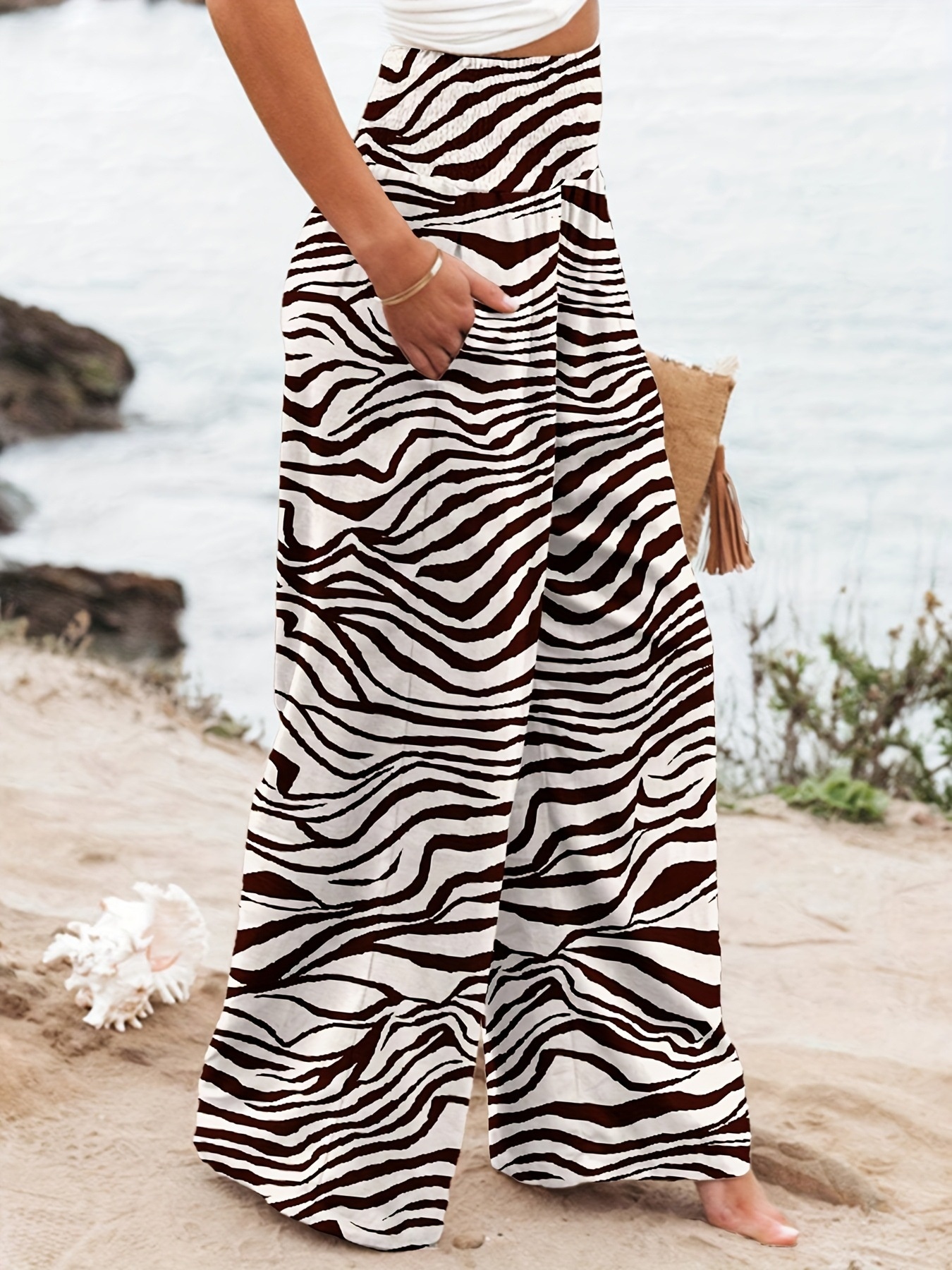 Plus Size Zebra Print High Waist Wide Leg Pants