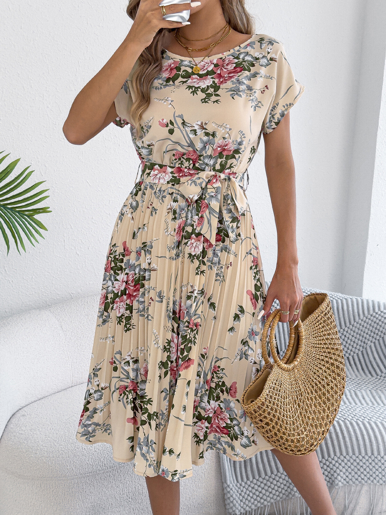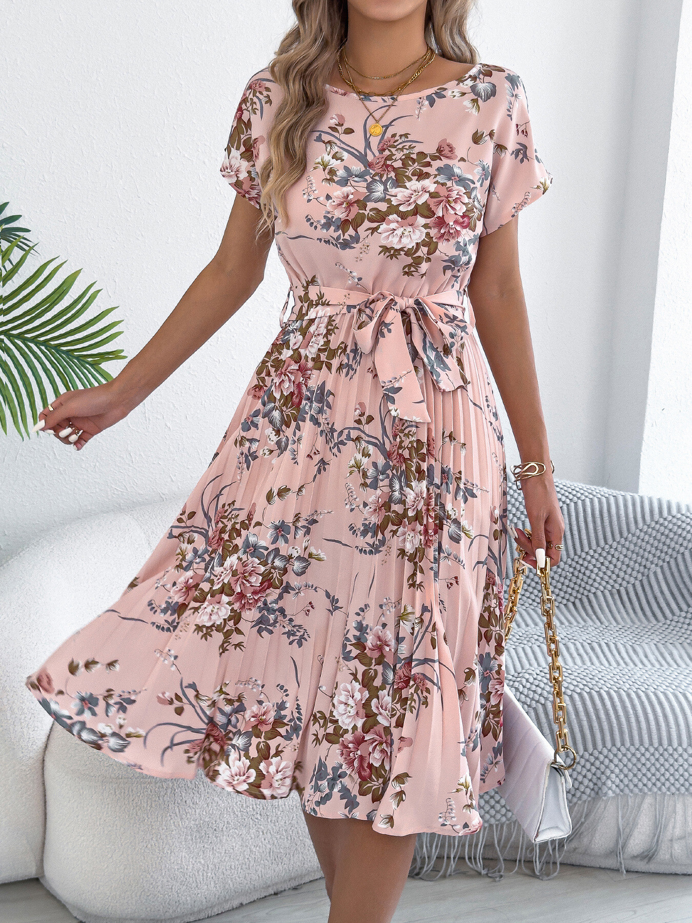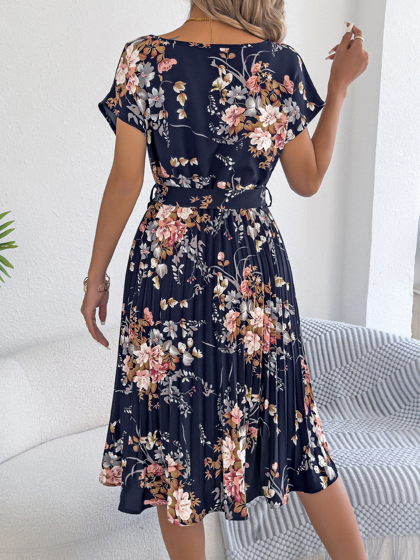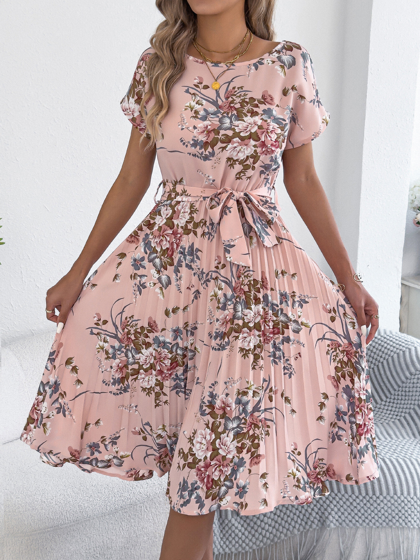 Floral Print Pleated A-Line Midi Dress