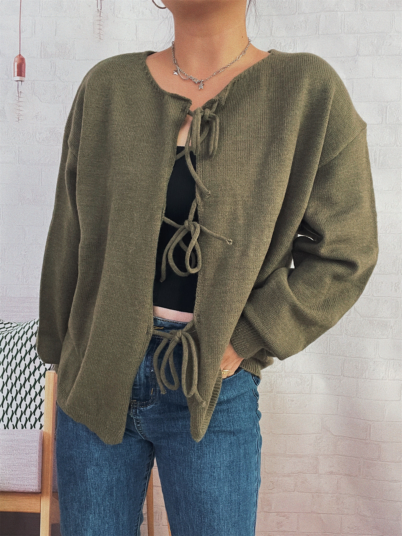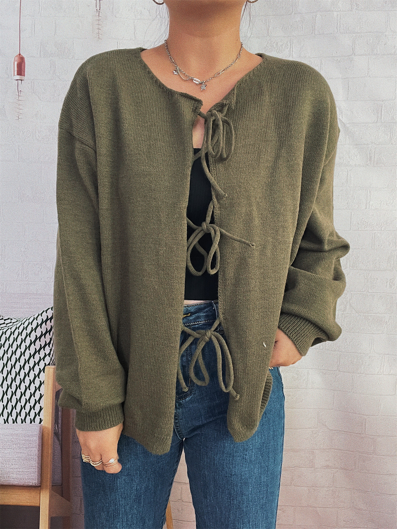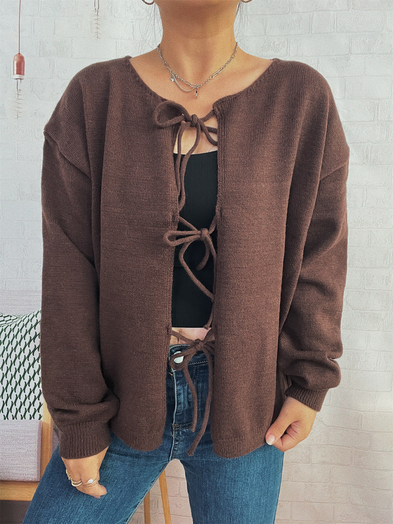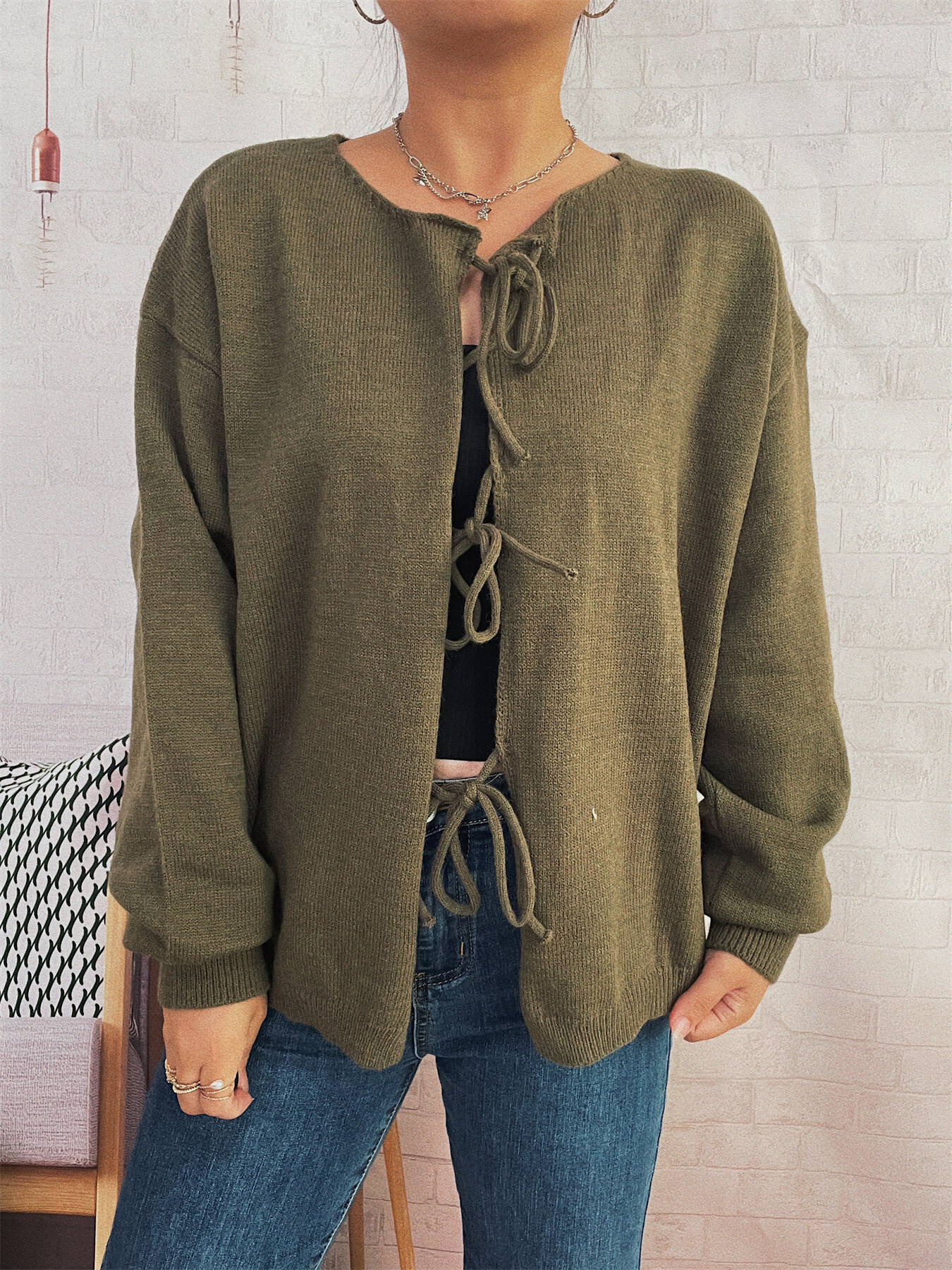 Tie Front Drop Shoulder Cardigan