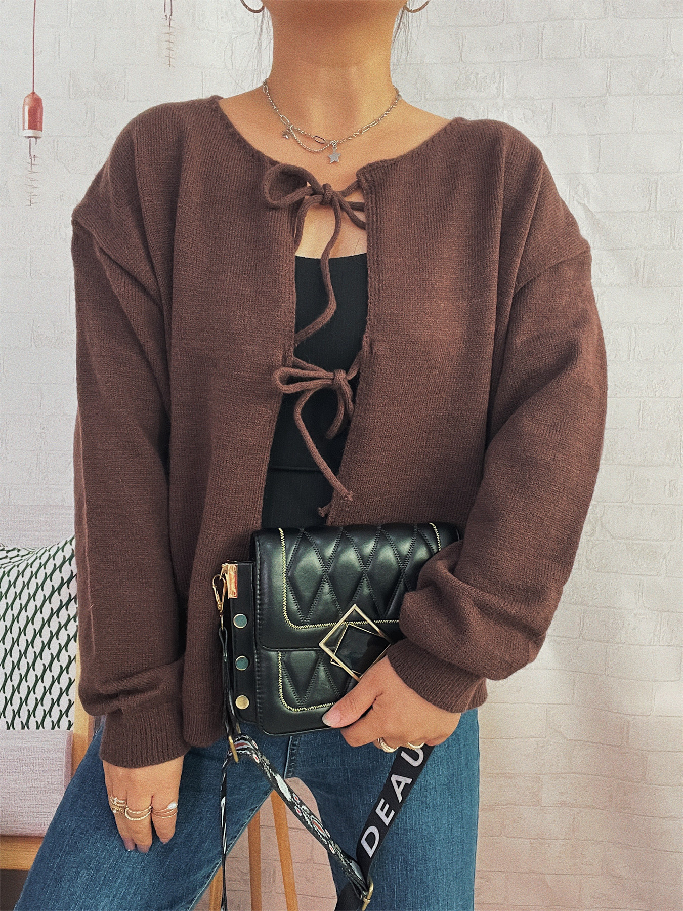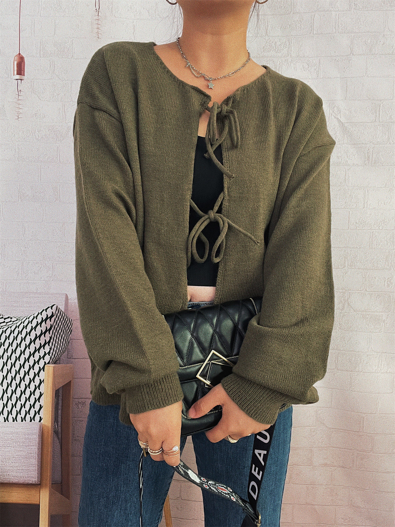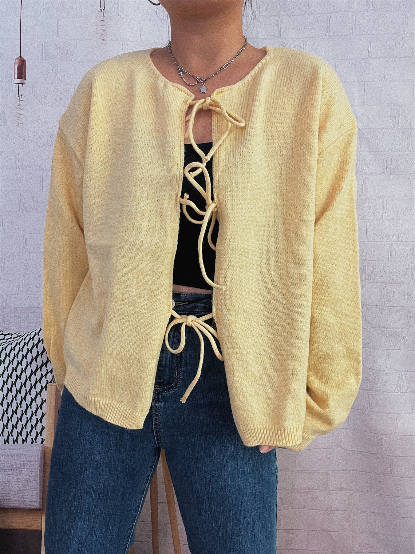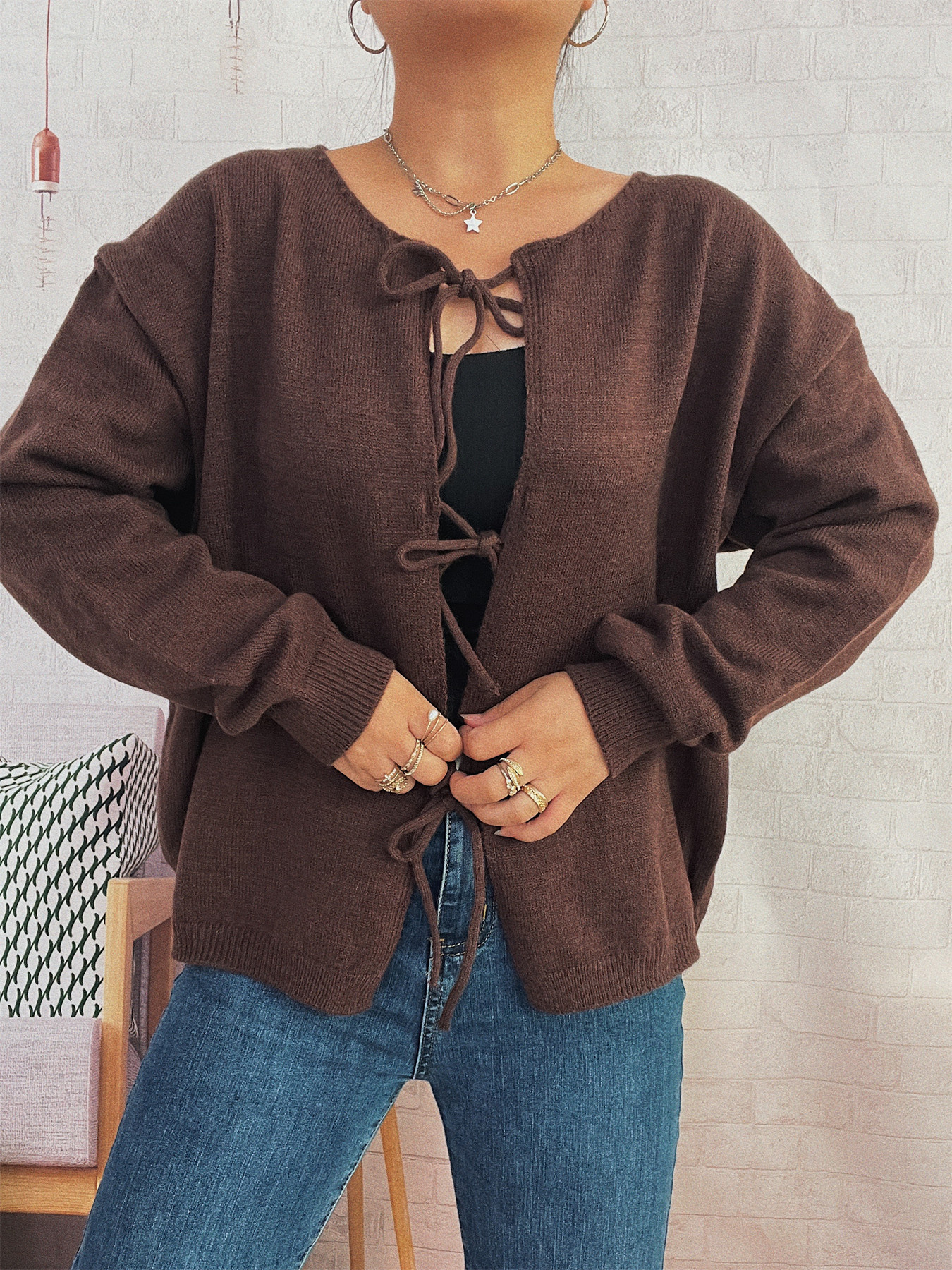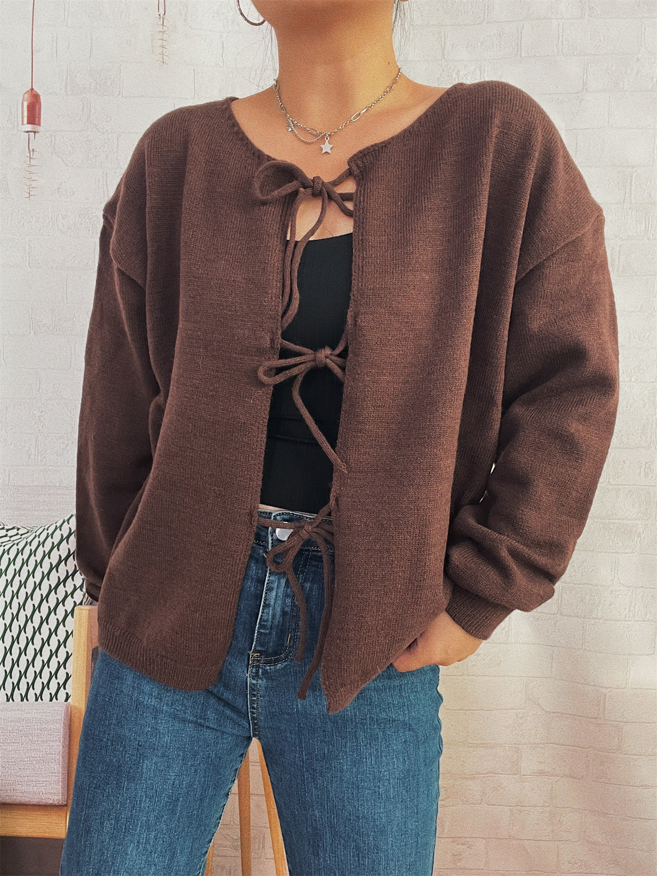 Tie Front Drop Shoulder Cardigan