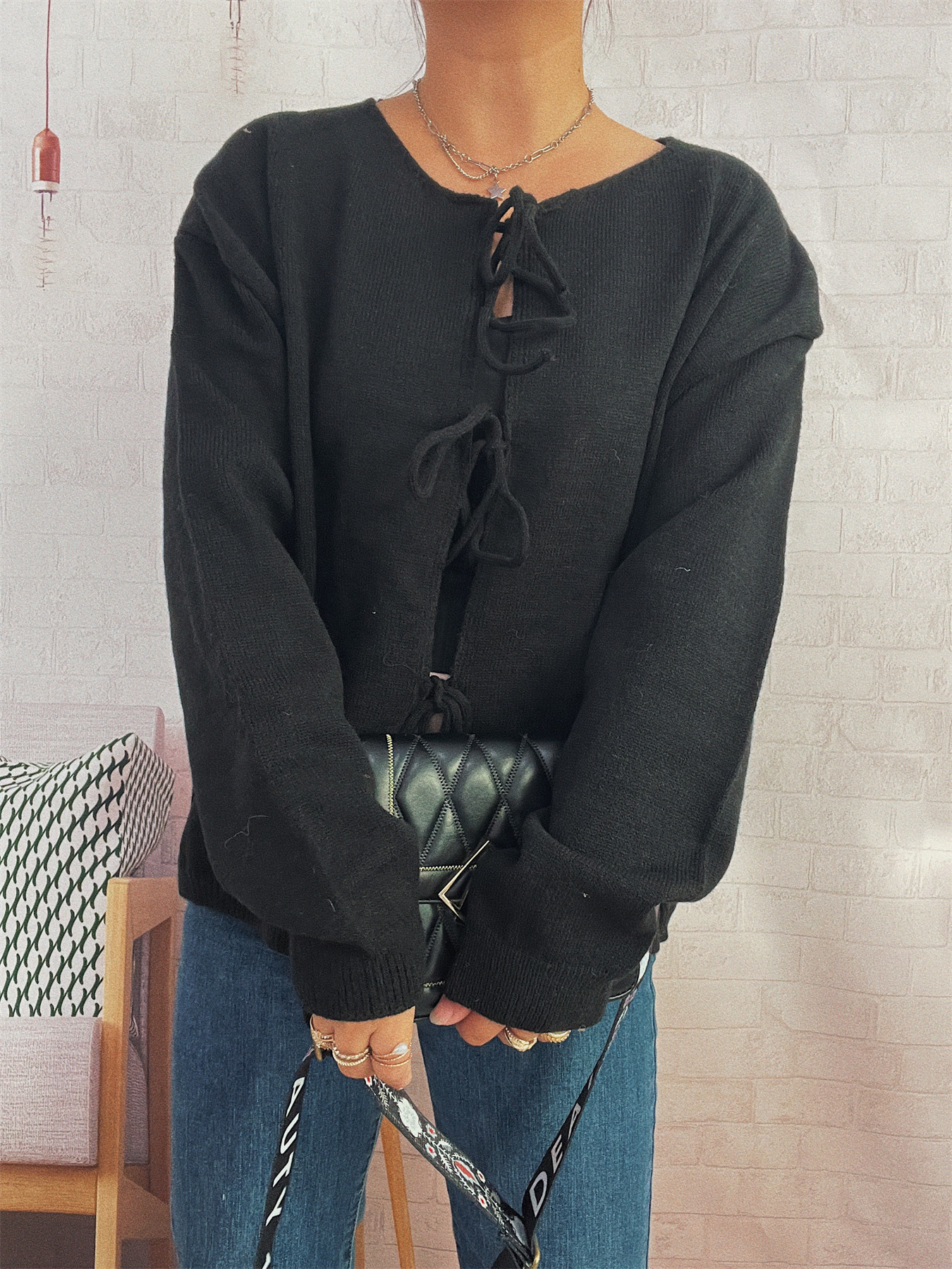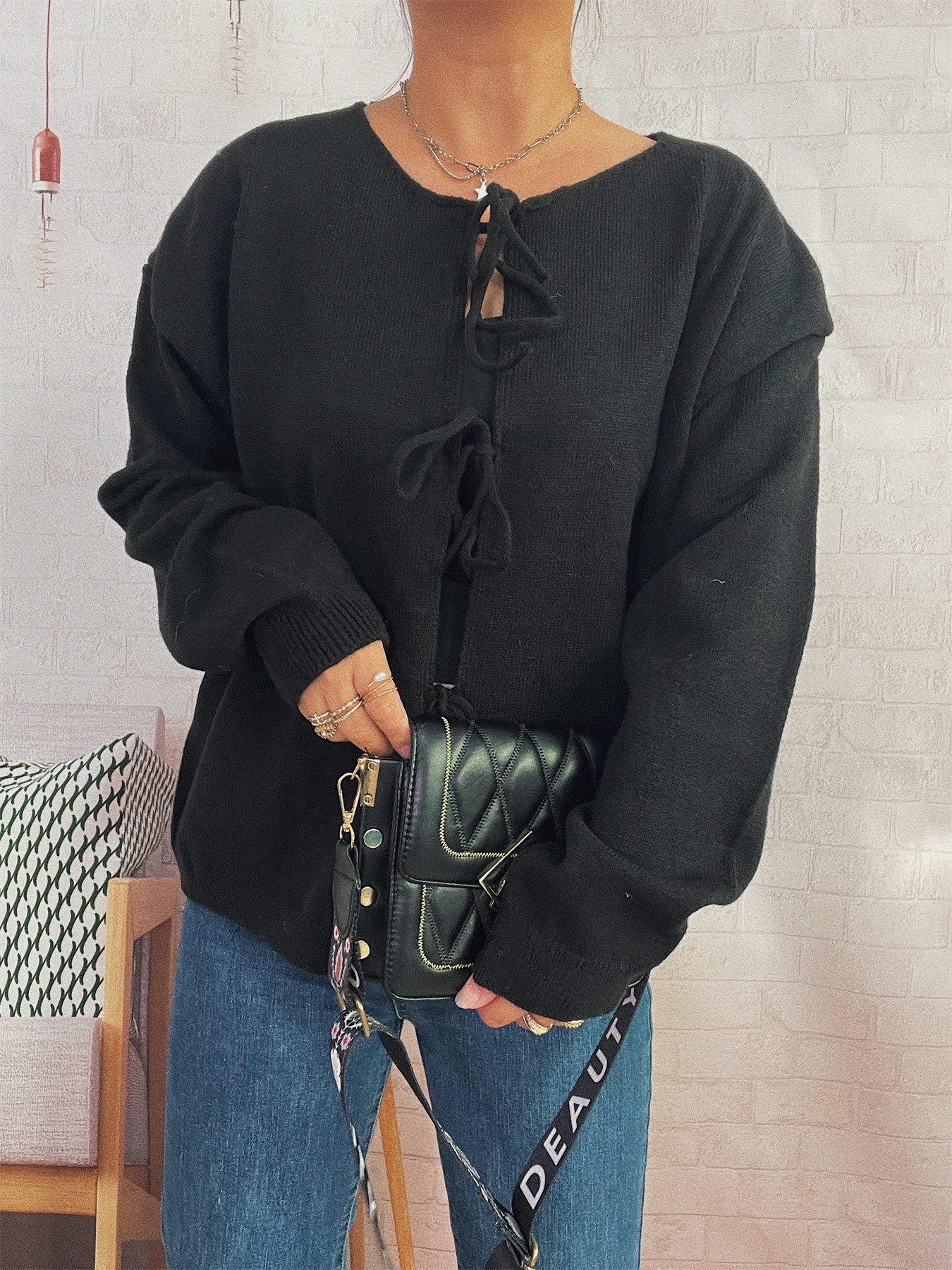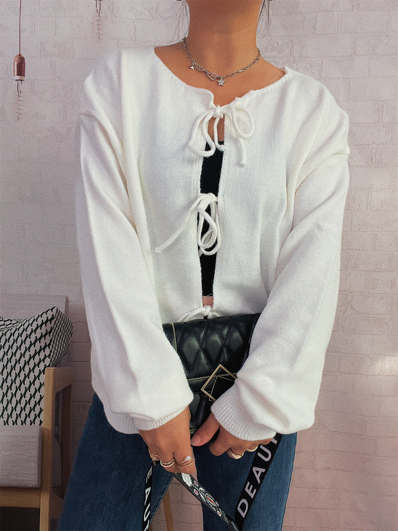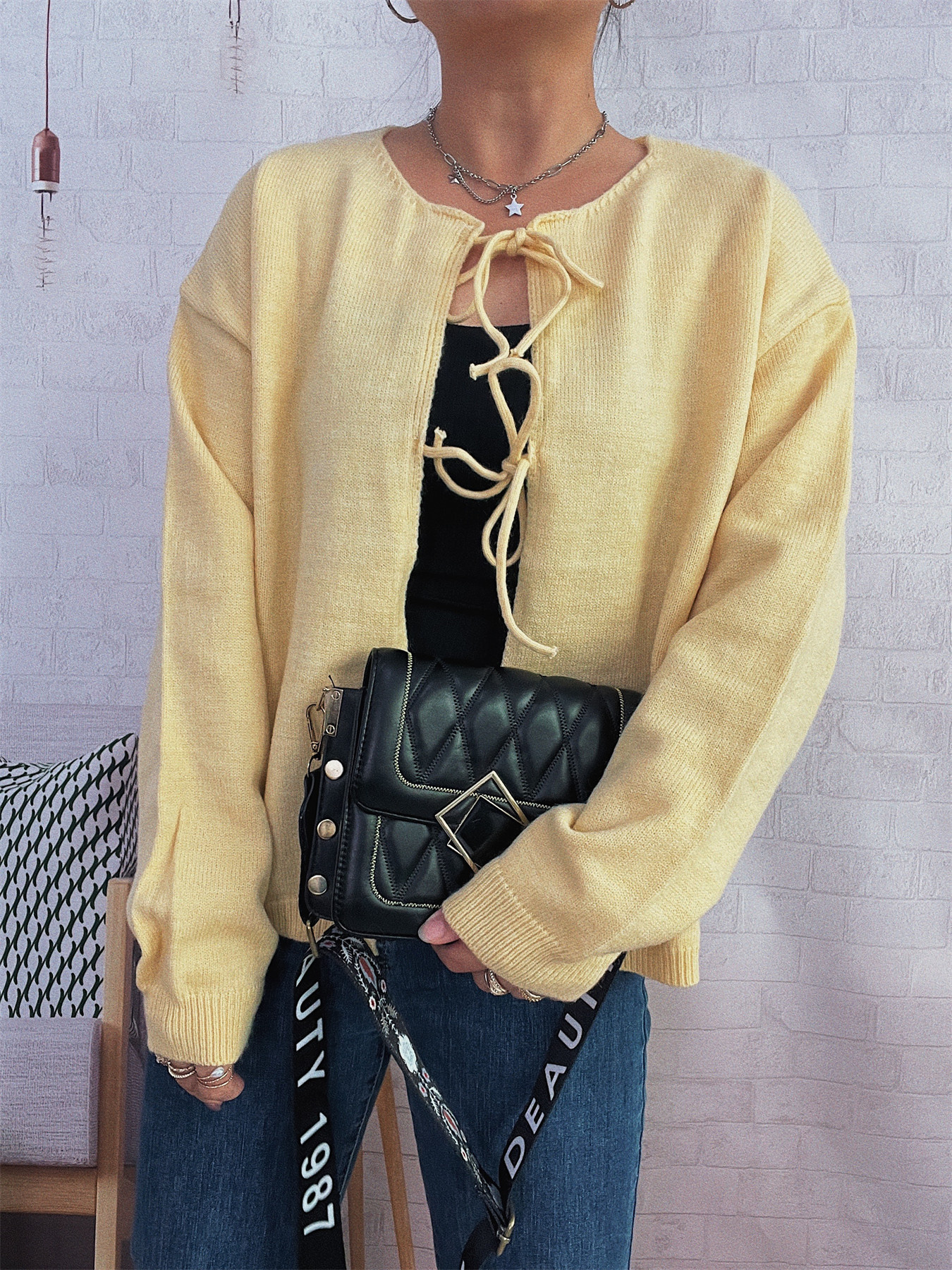 Tie Front Drop Shoulder Cardigan
