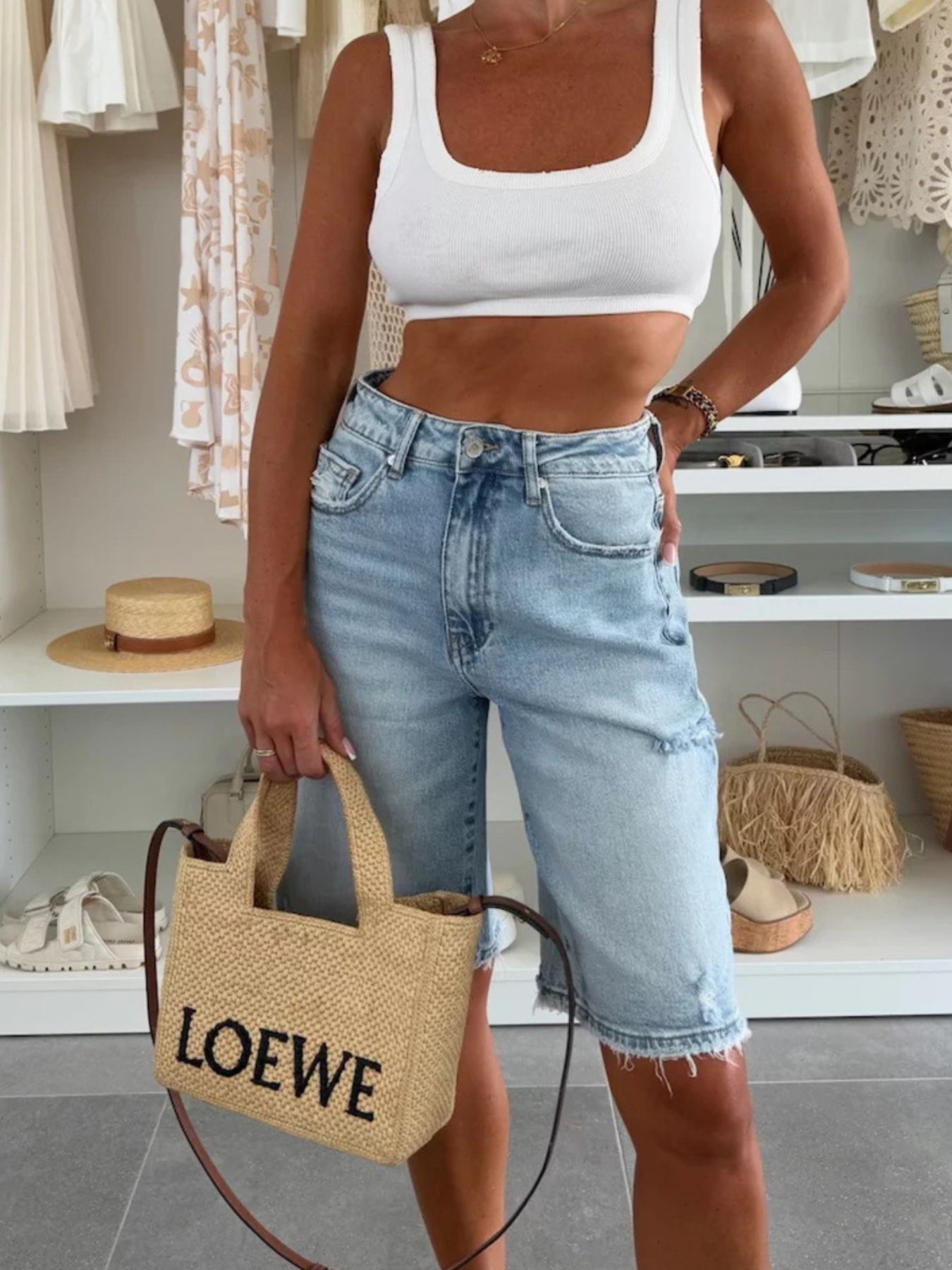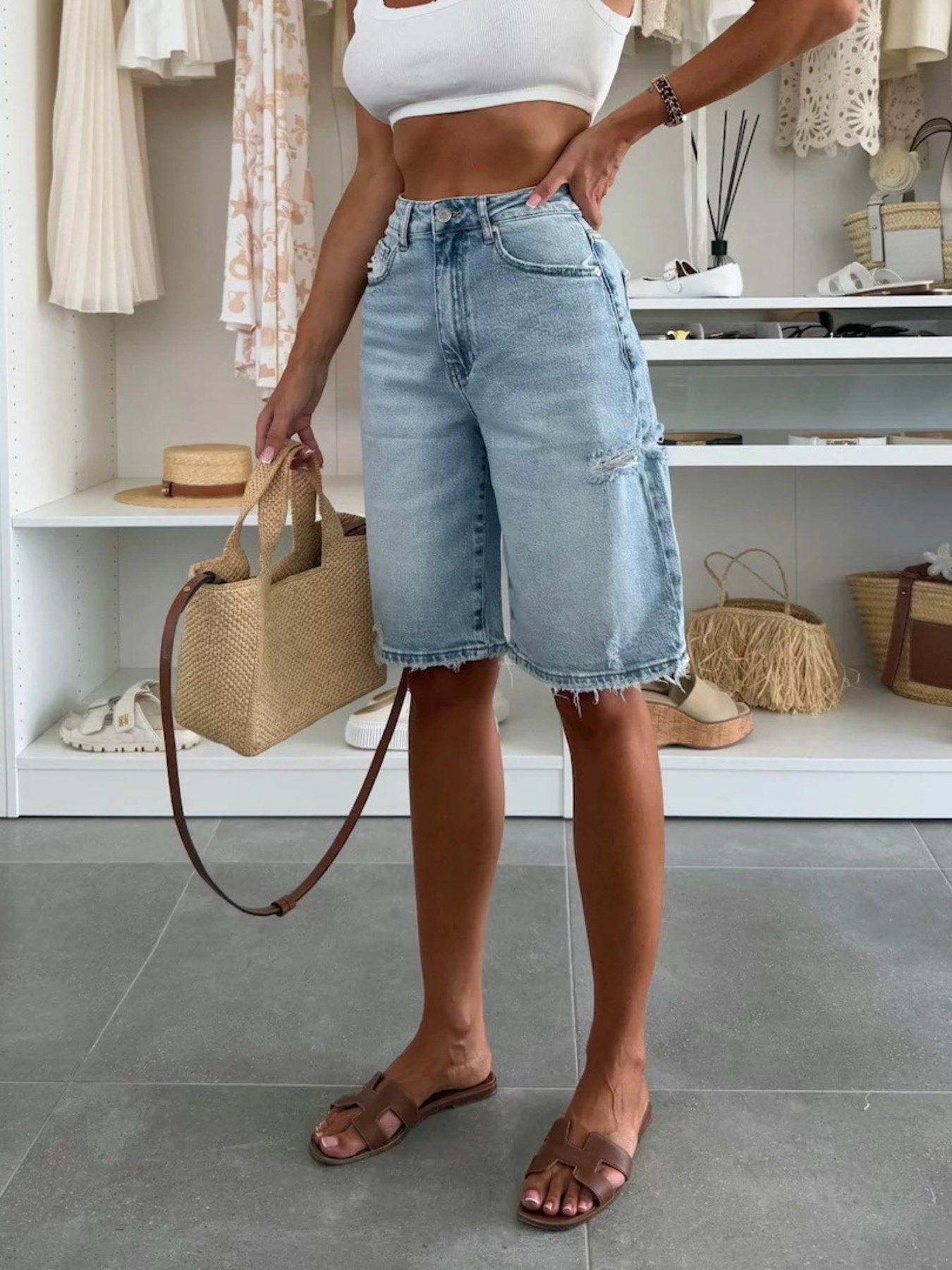 Distressed High-Waisted Denim Shorts