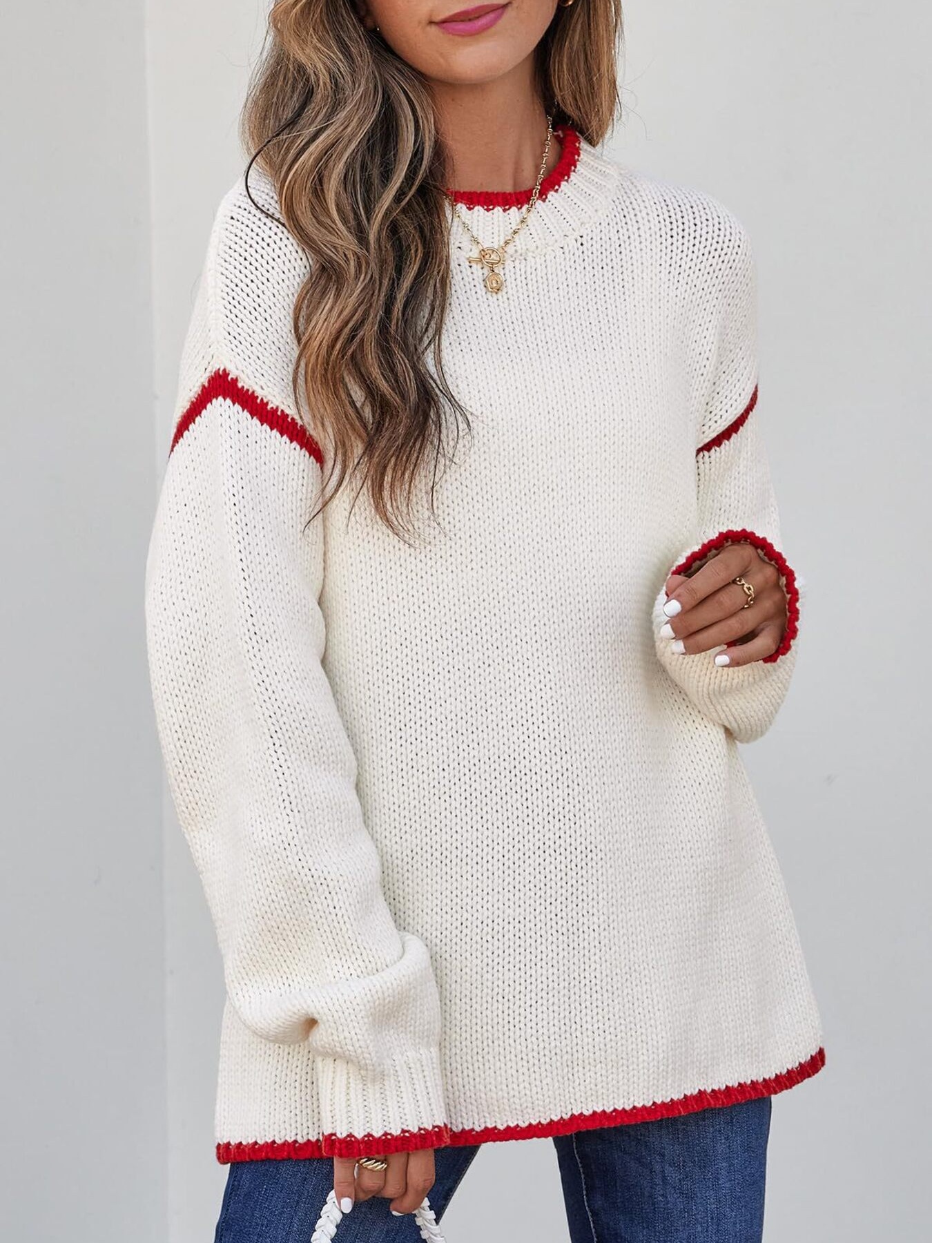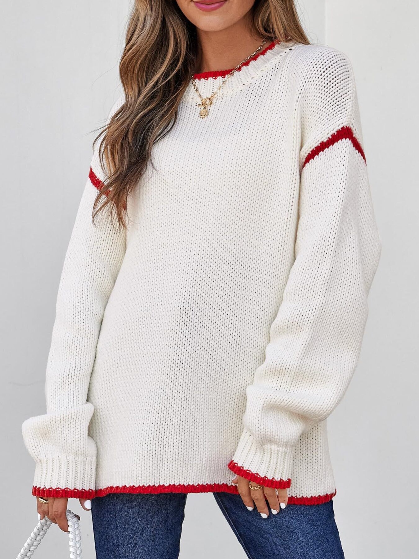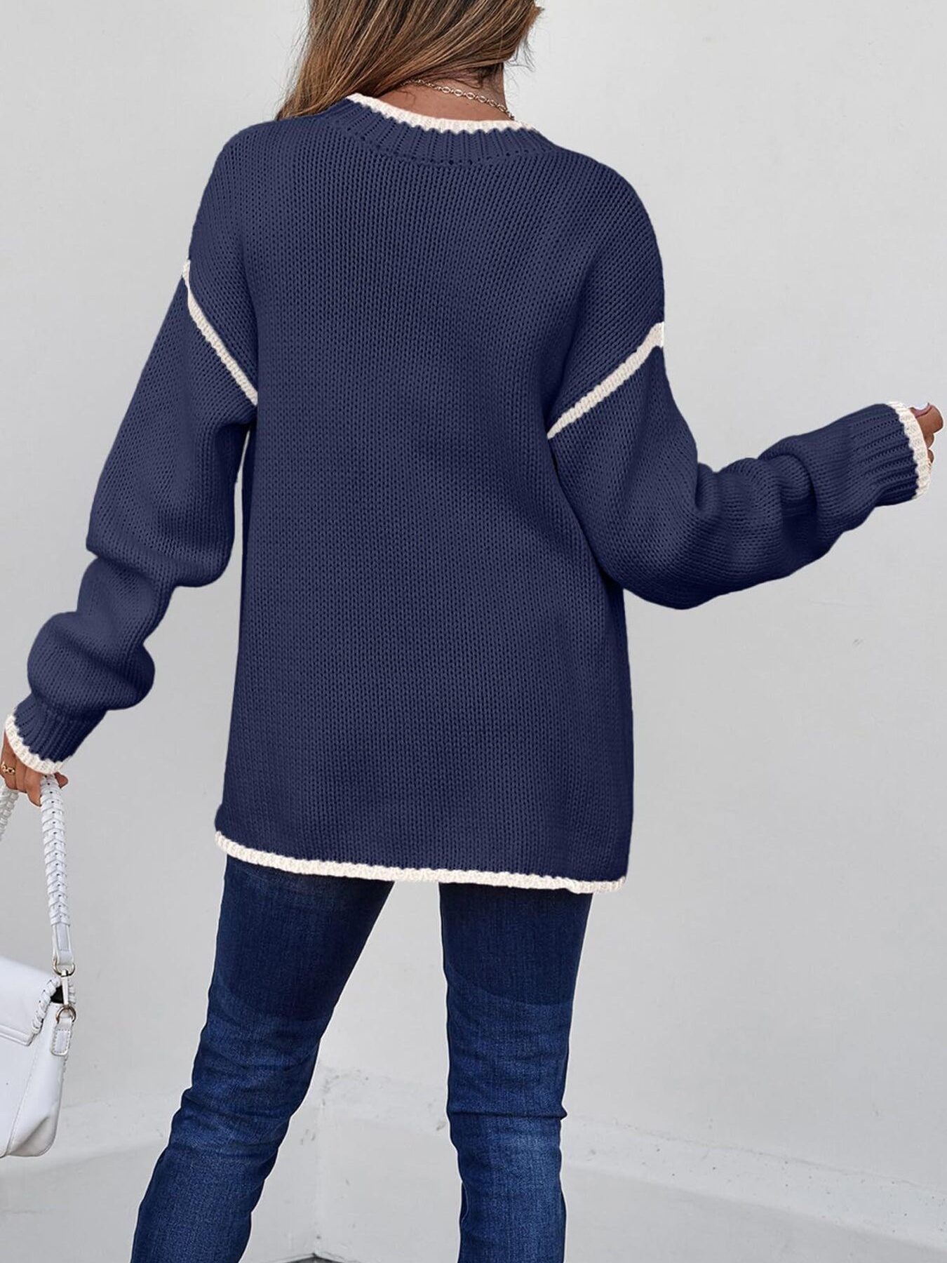 Contrast Trim Long Sleeve Sweater