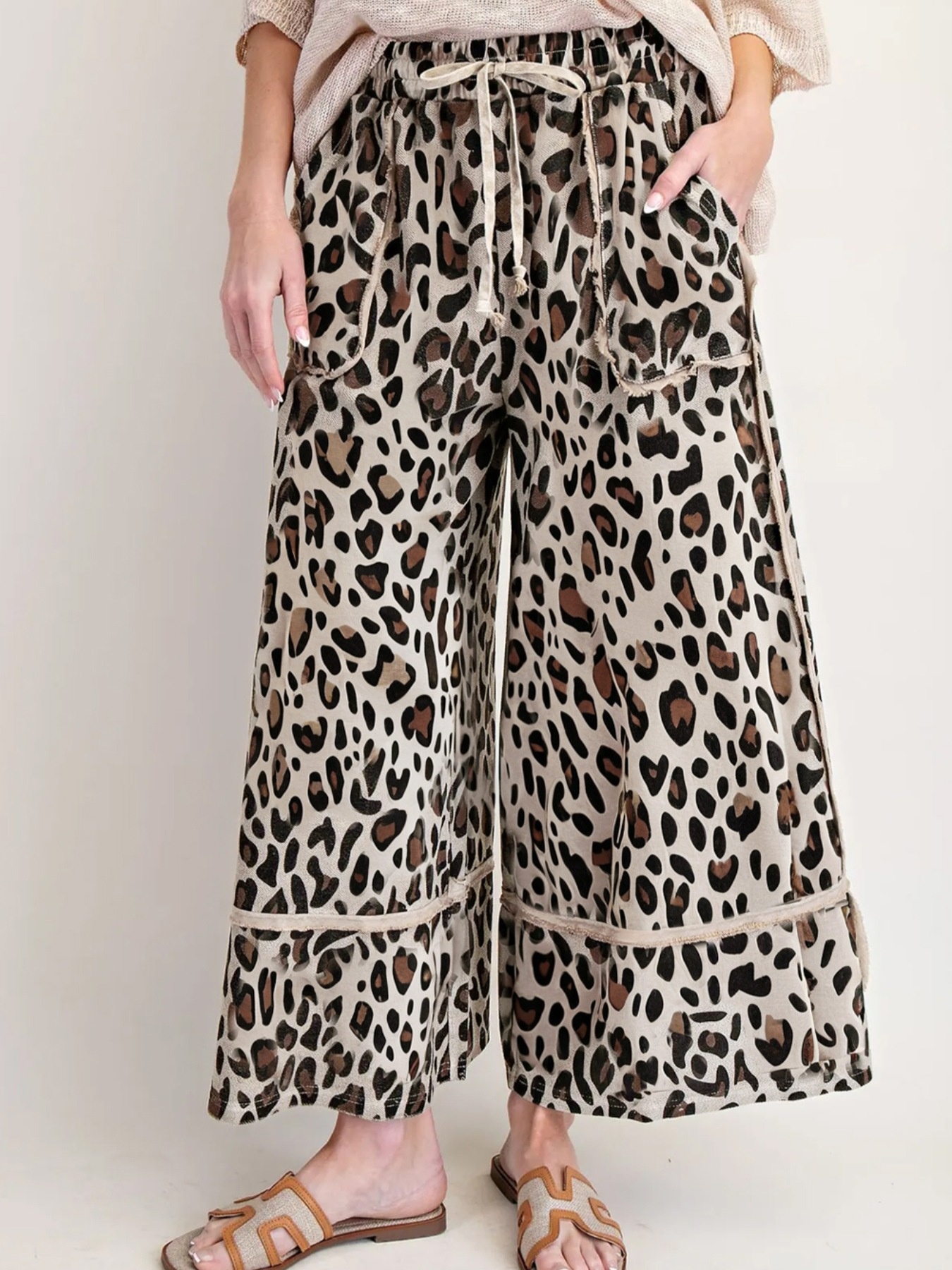 Leopard Print Wide Leg Drawstring Pants