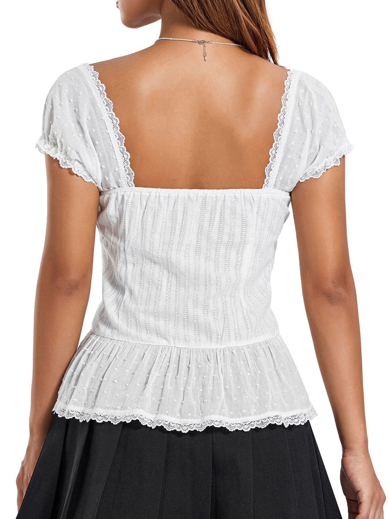 Ruffled Lace Trim Corset Blouse