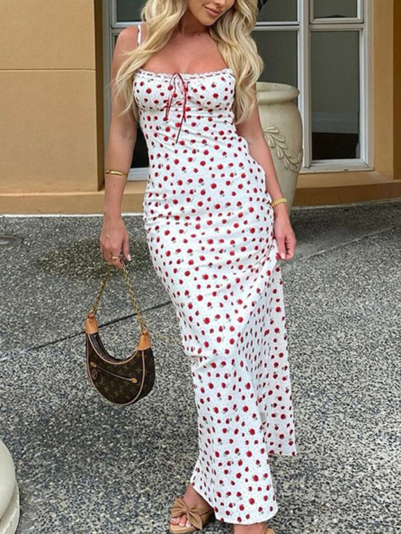 Floral Print Lace Trimmed Cami Dress