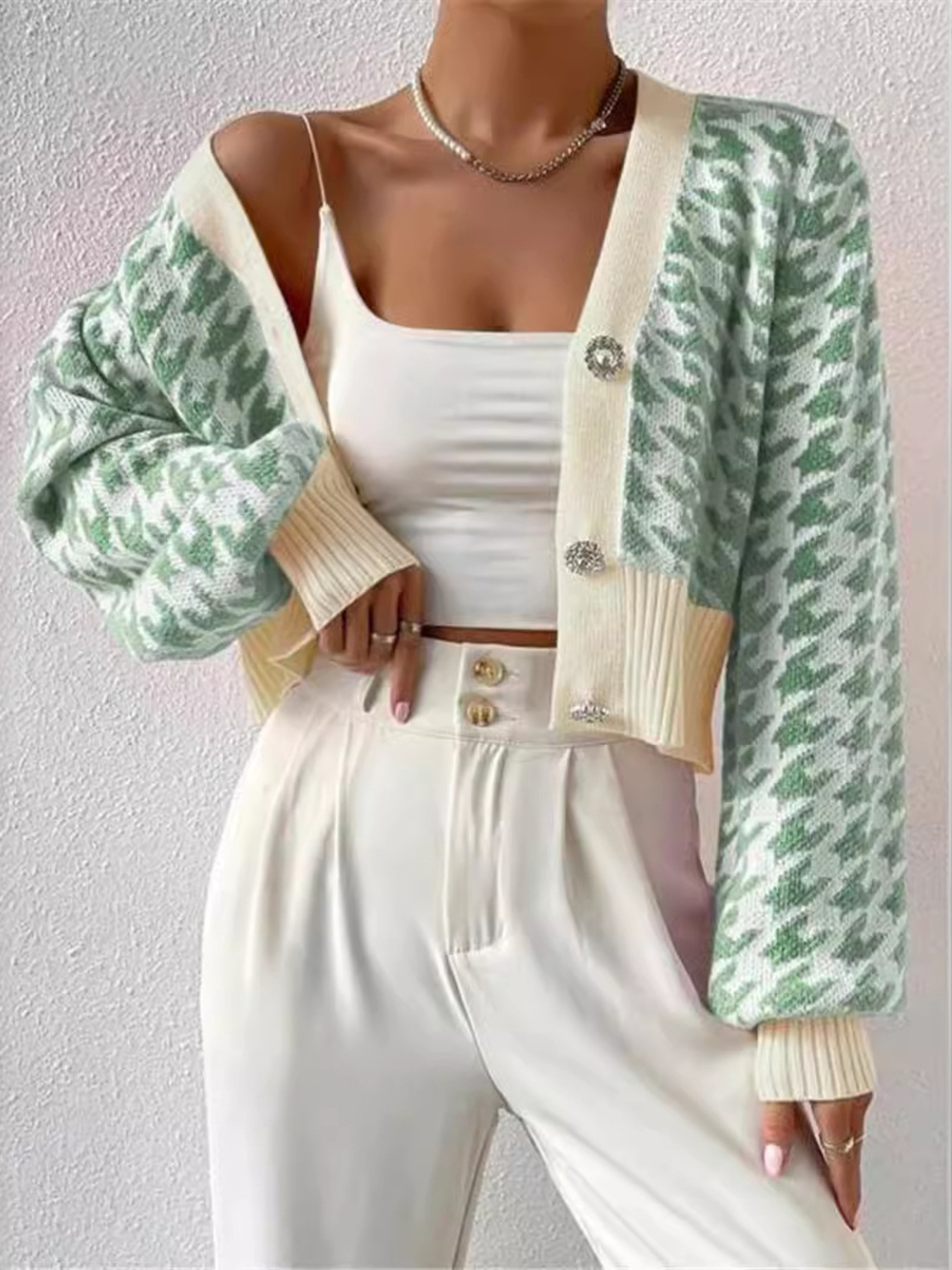 Houndstooth V-Neck Button Up Cardigan