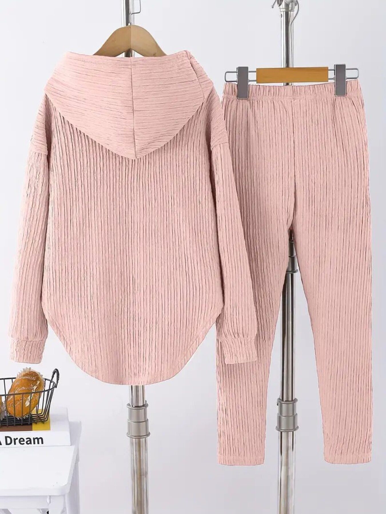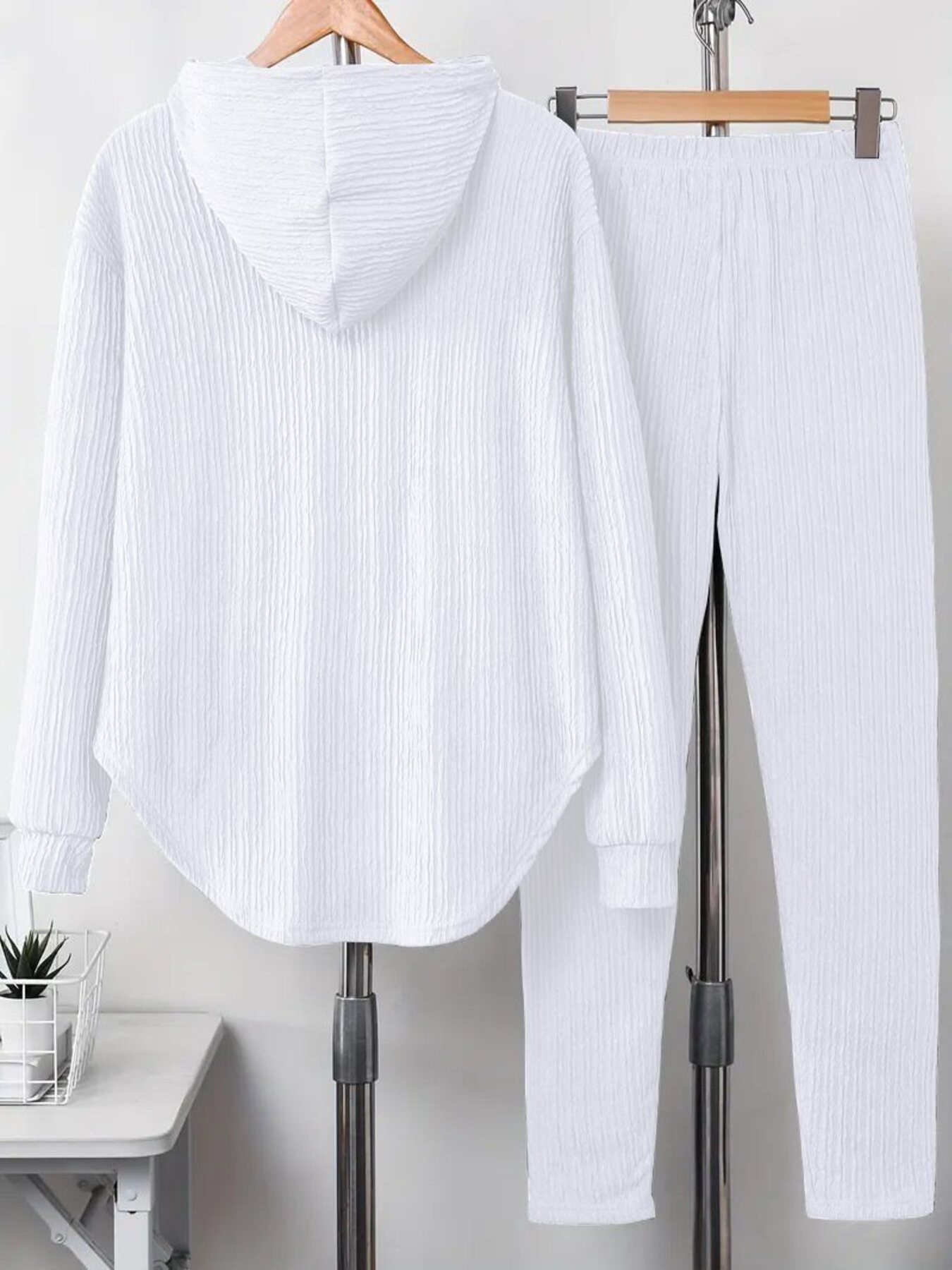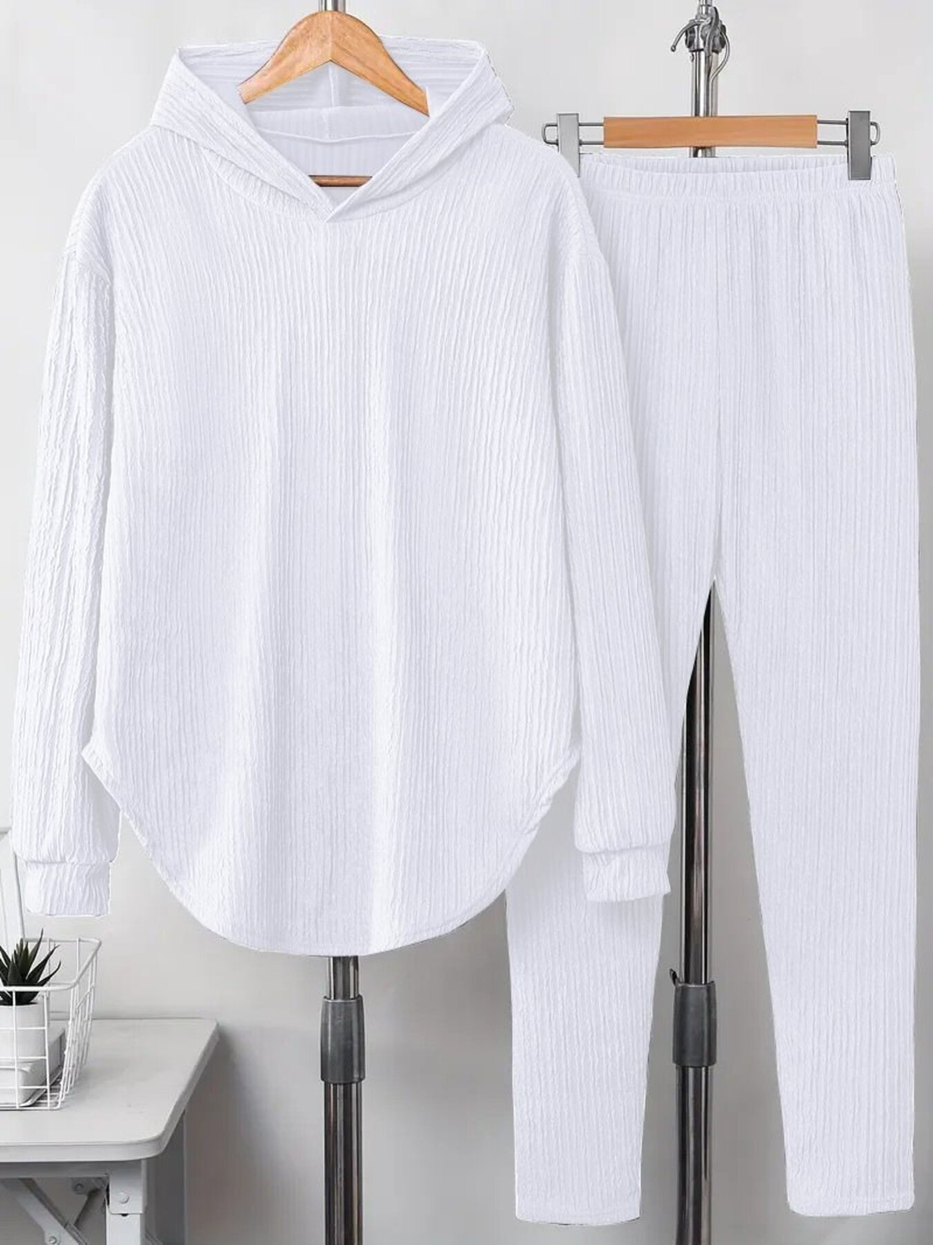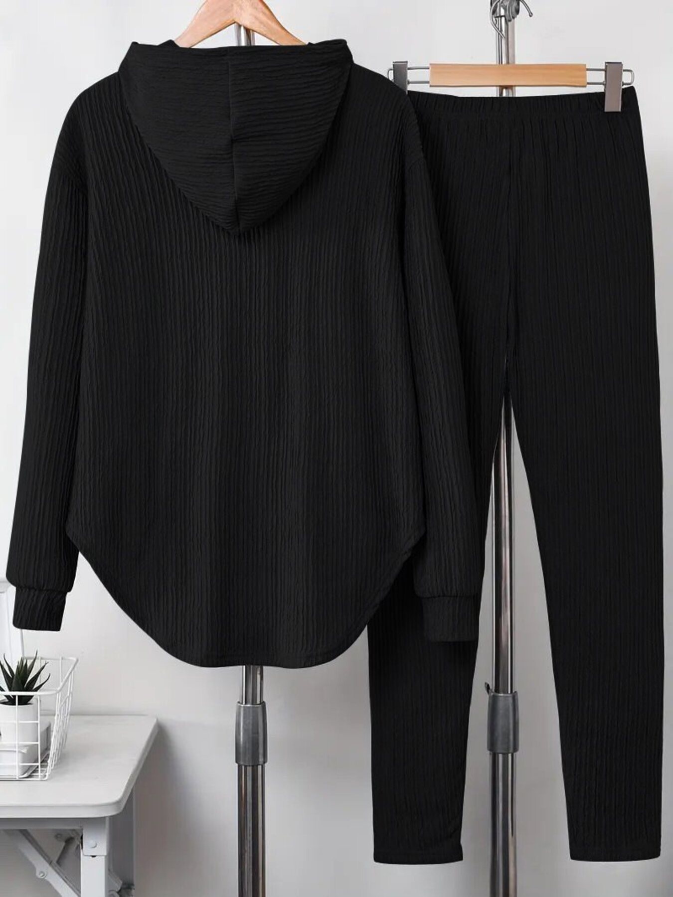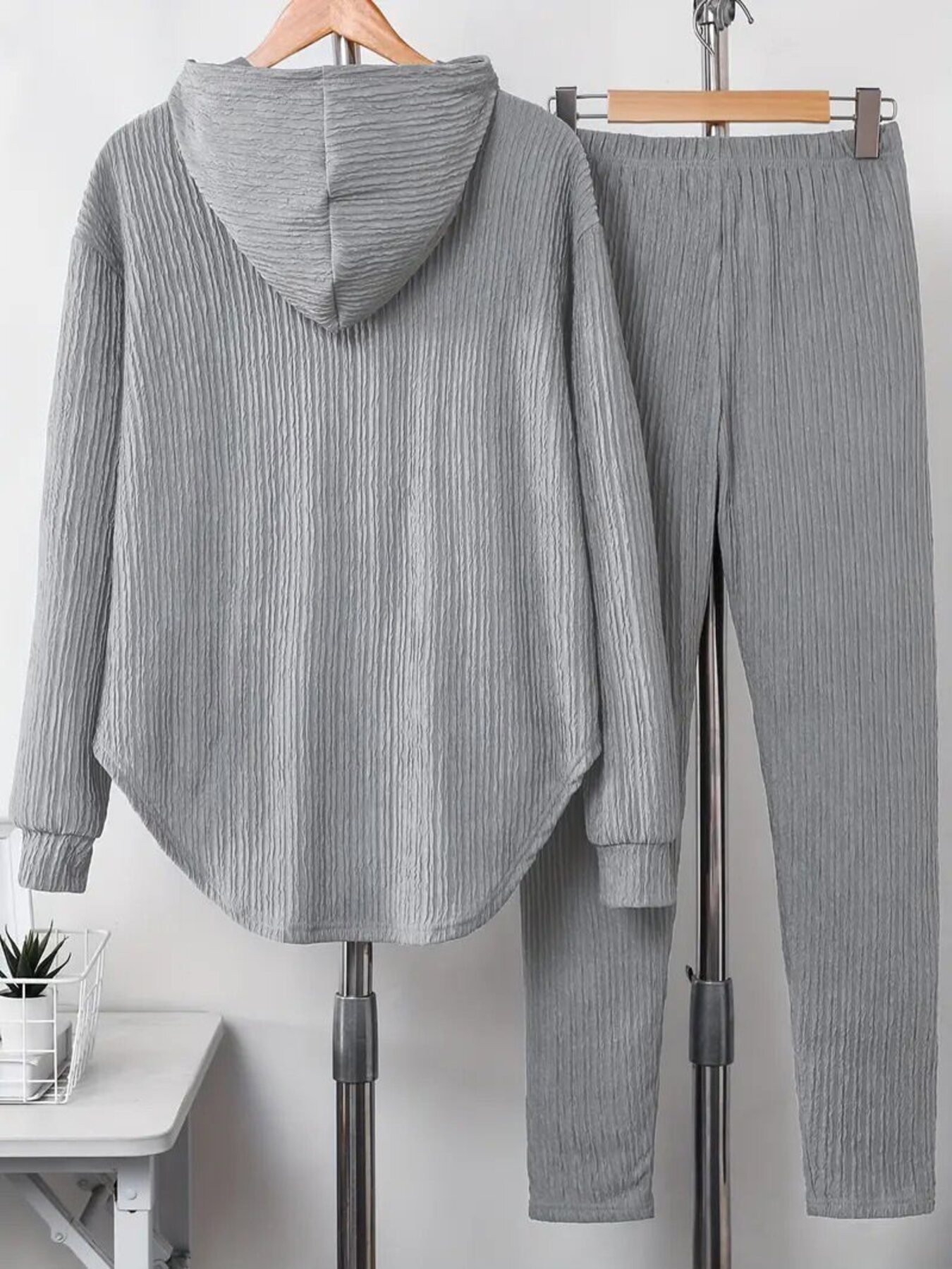Textured Long Sleeve Hoodie And Pants Set