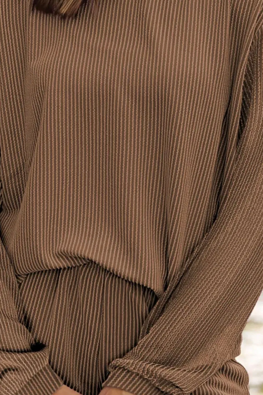 Round Neck Long Sleeve Top And Shorts Set