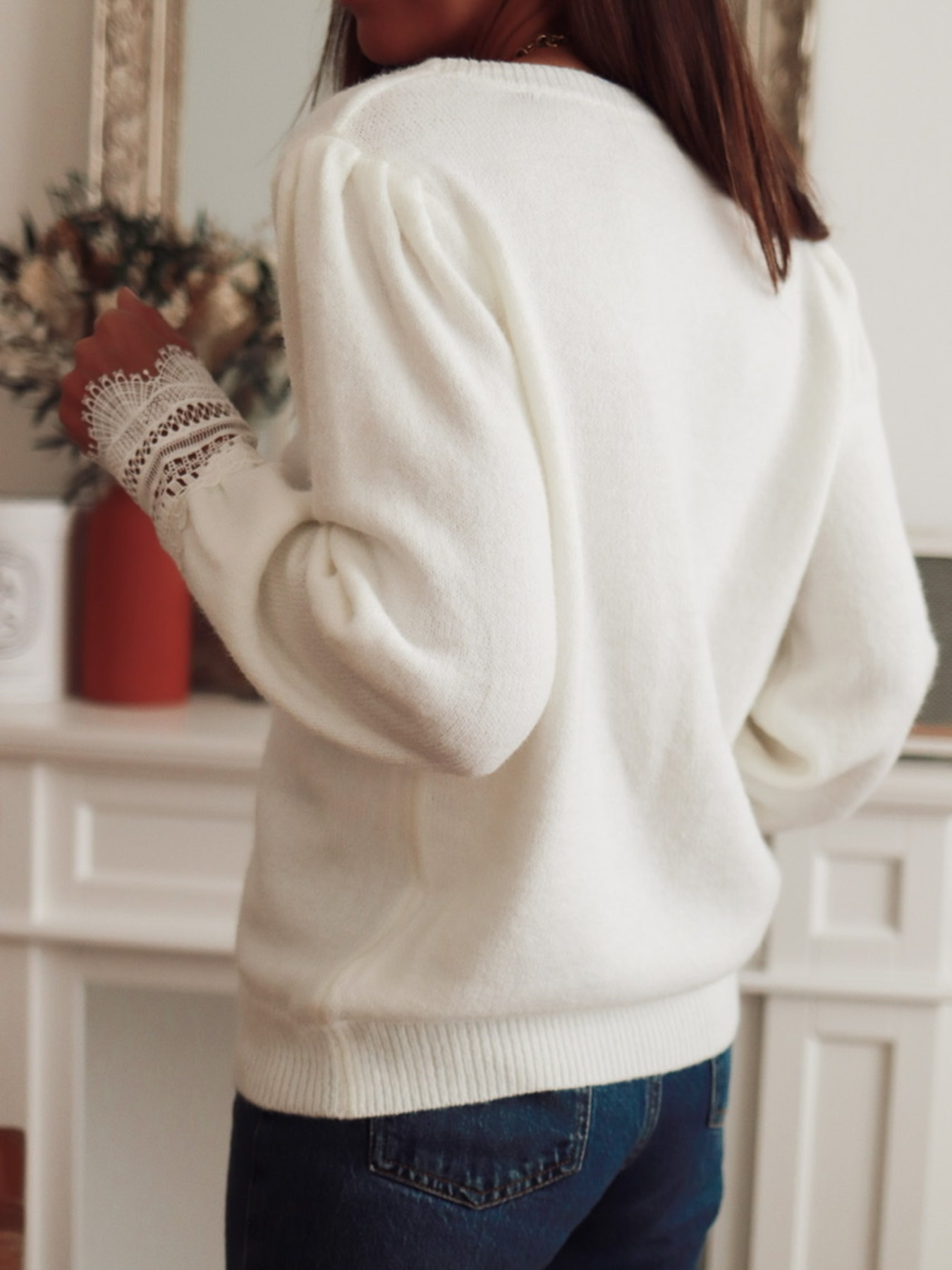 Lace Trim V-Neck Sweater