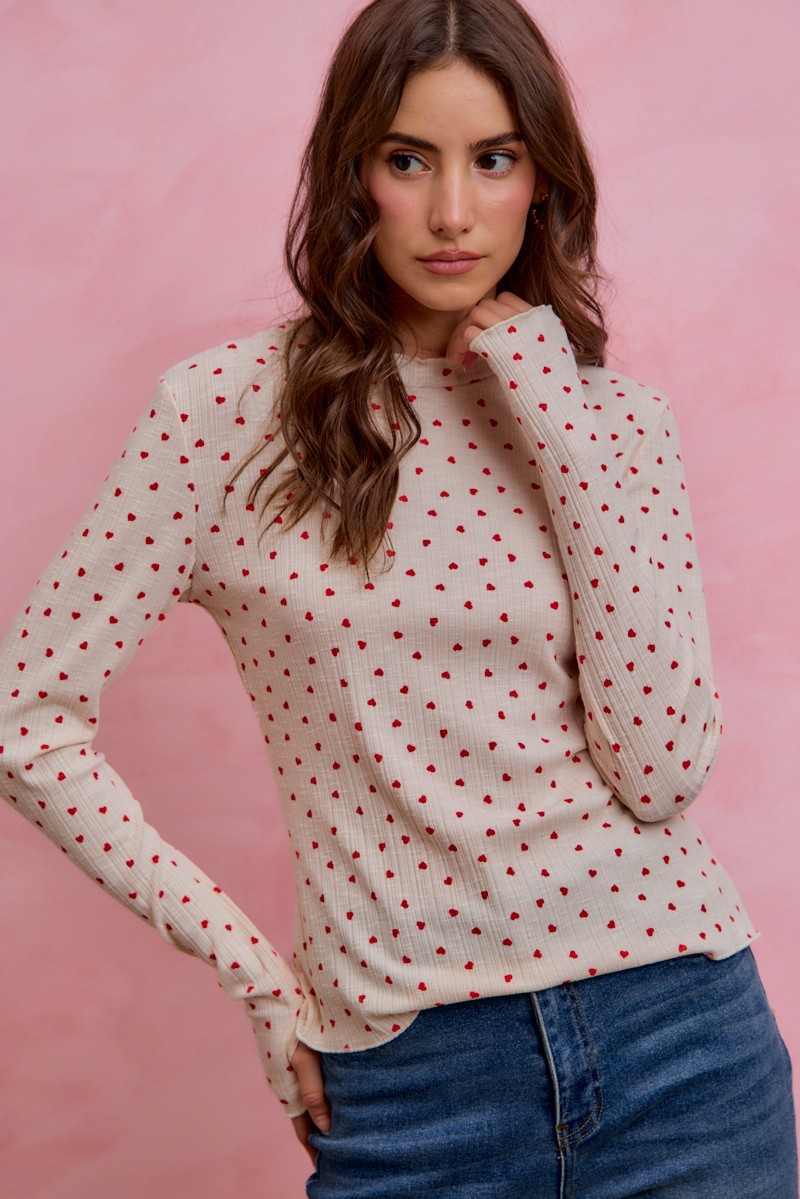 So Me Ditsy Heart All Over Slub Rib Knit Valentine Top