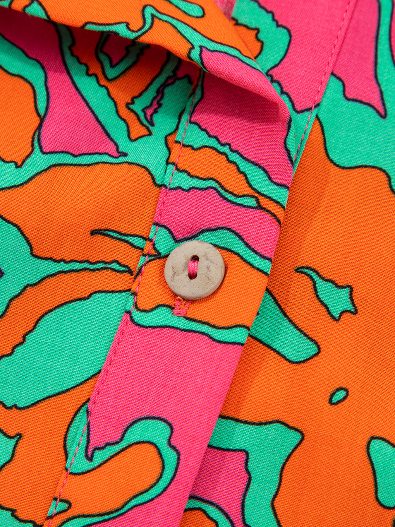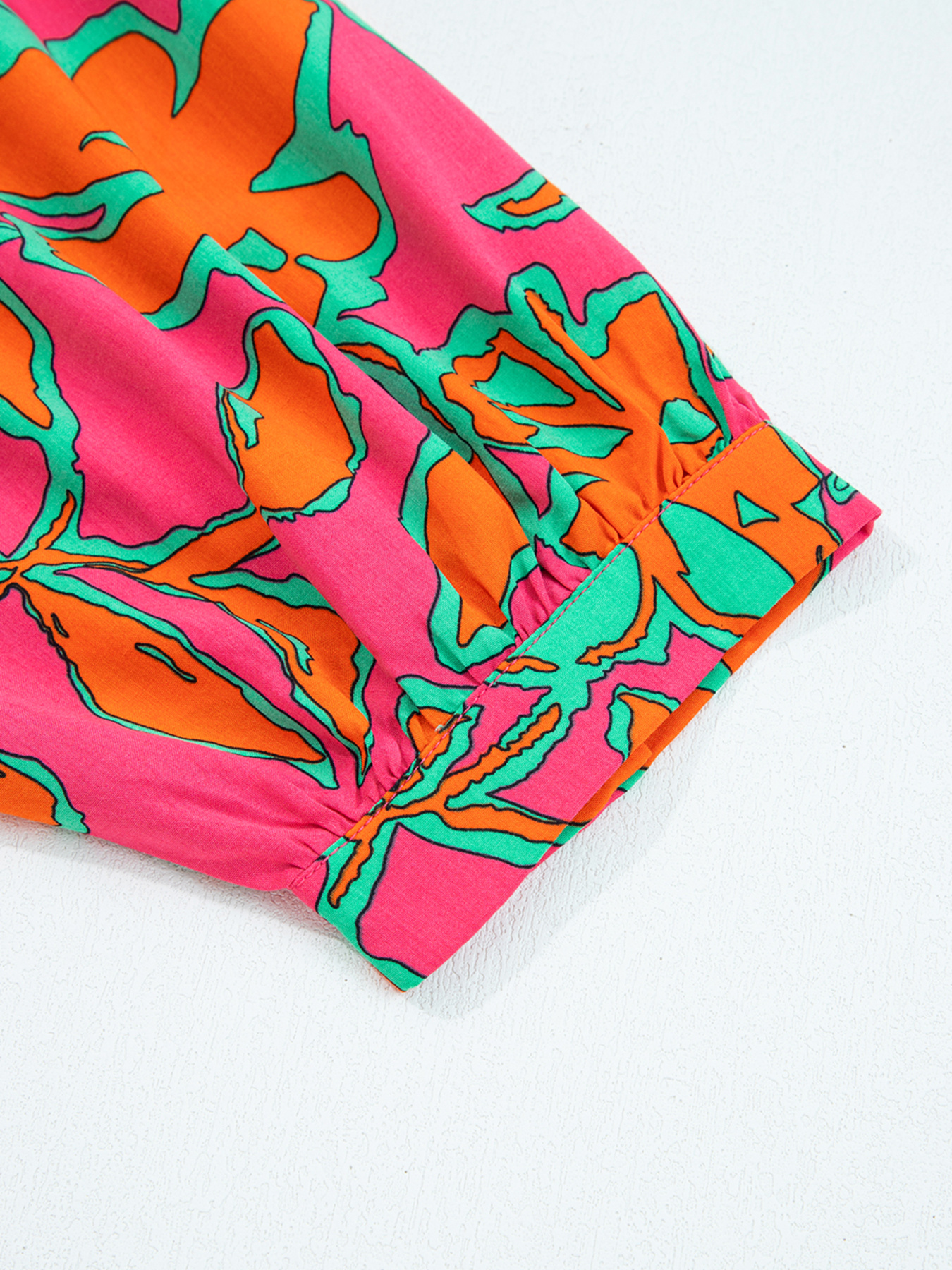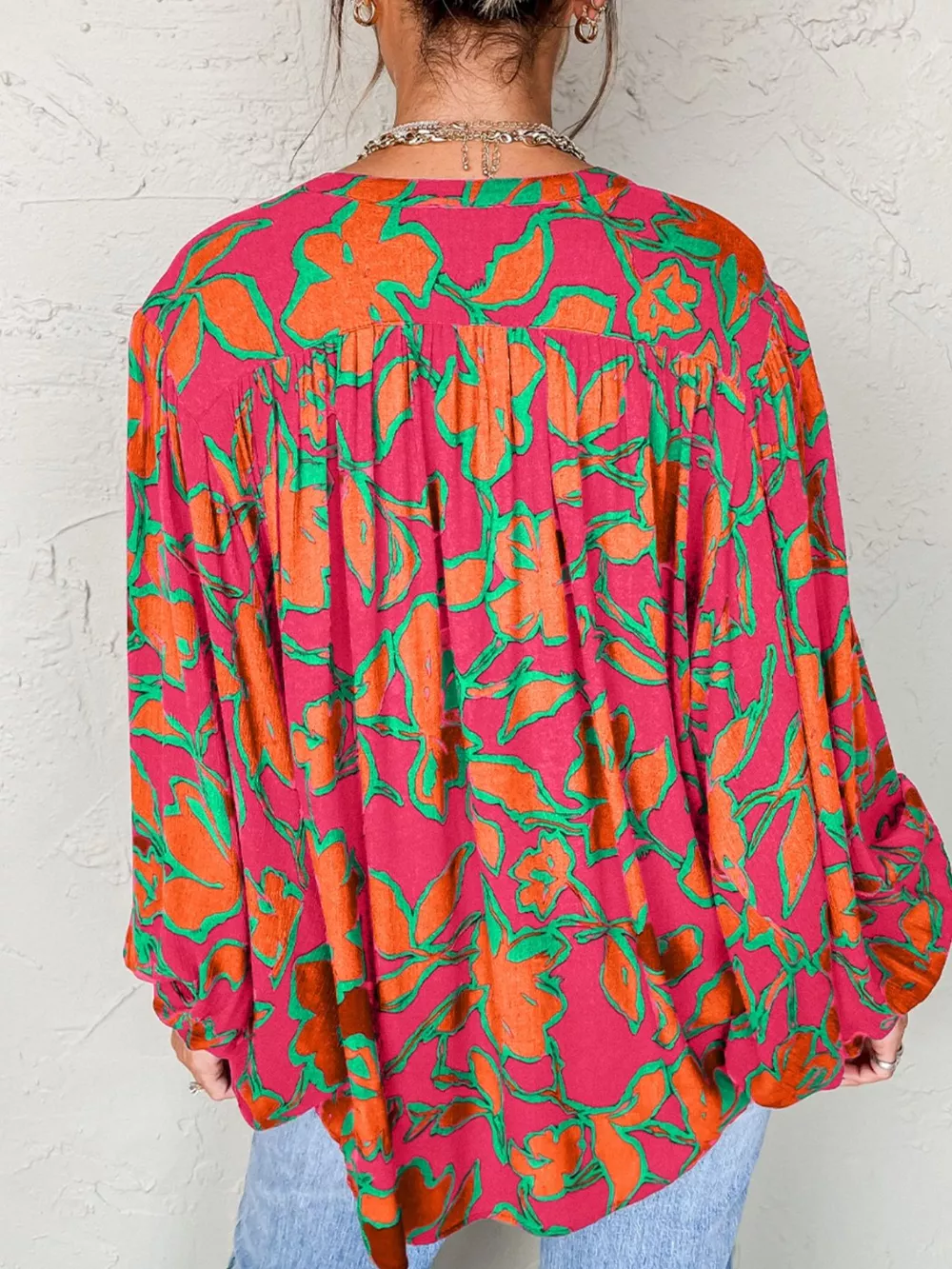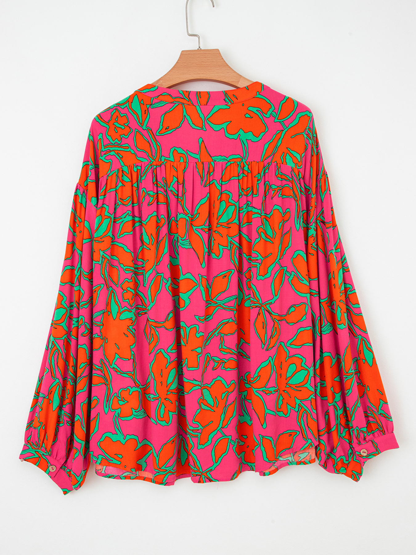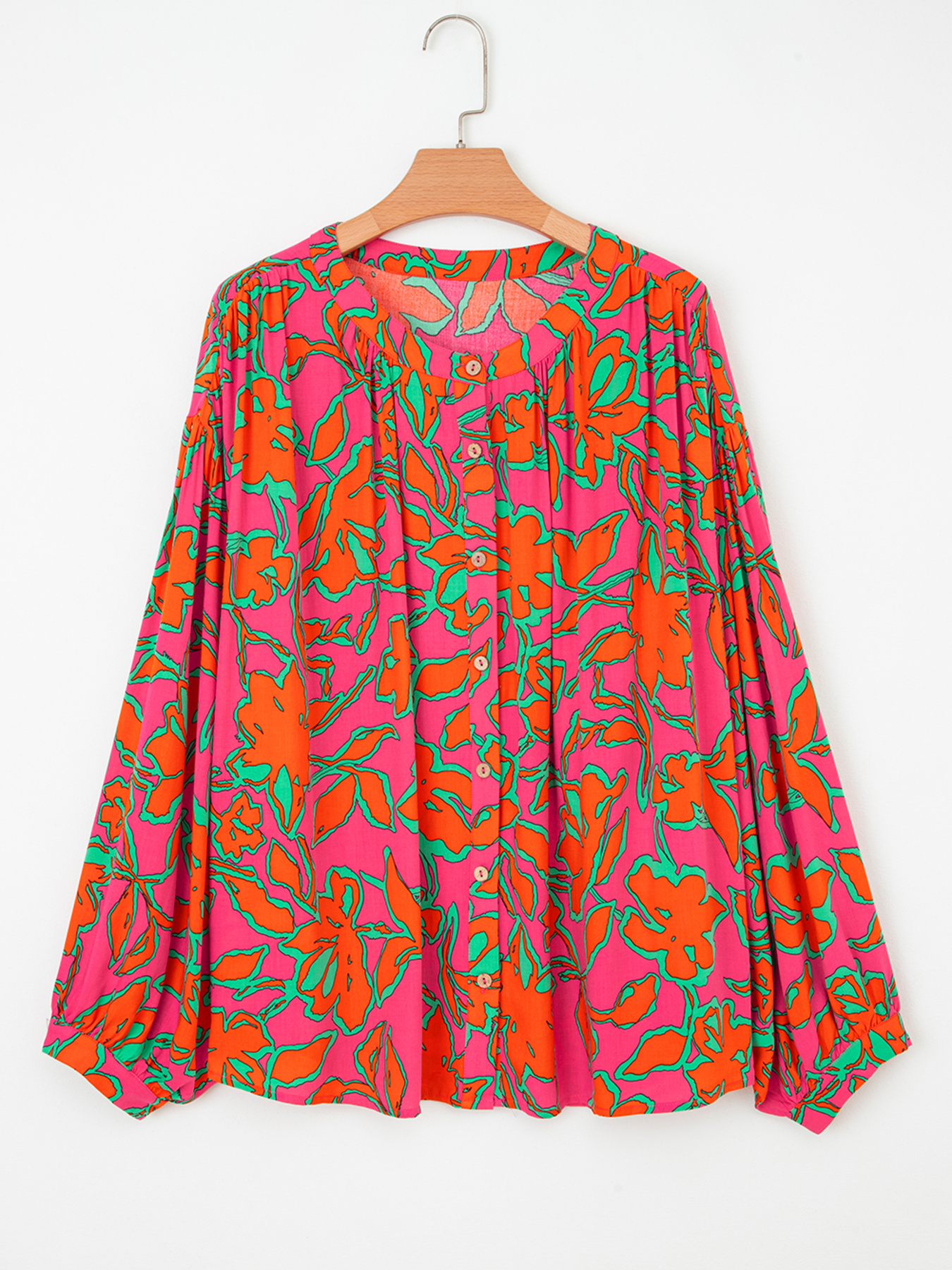 Floral Print Batwing Sleeve Buttoned Loose Fit Shirt