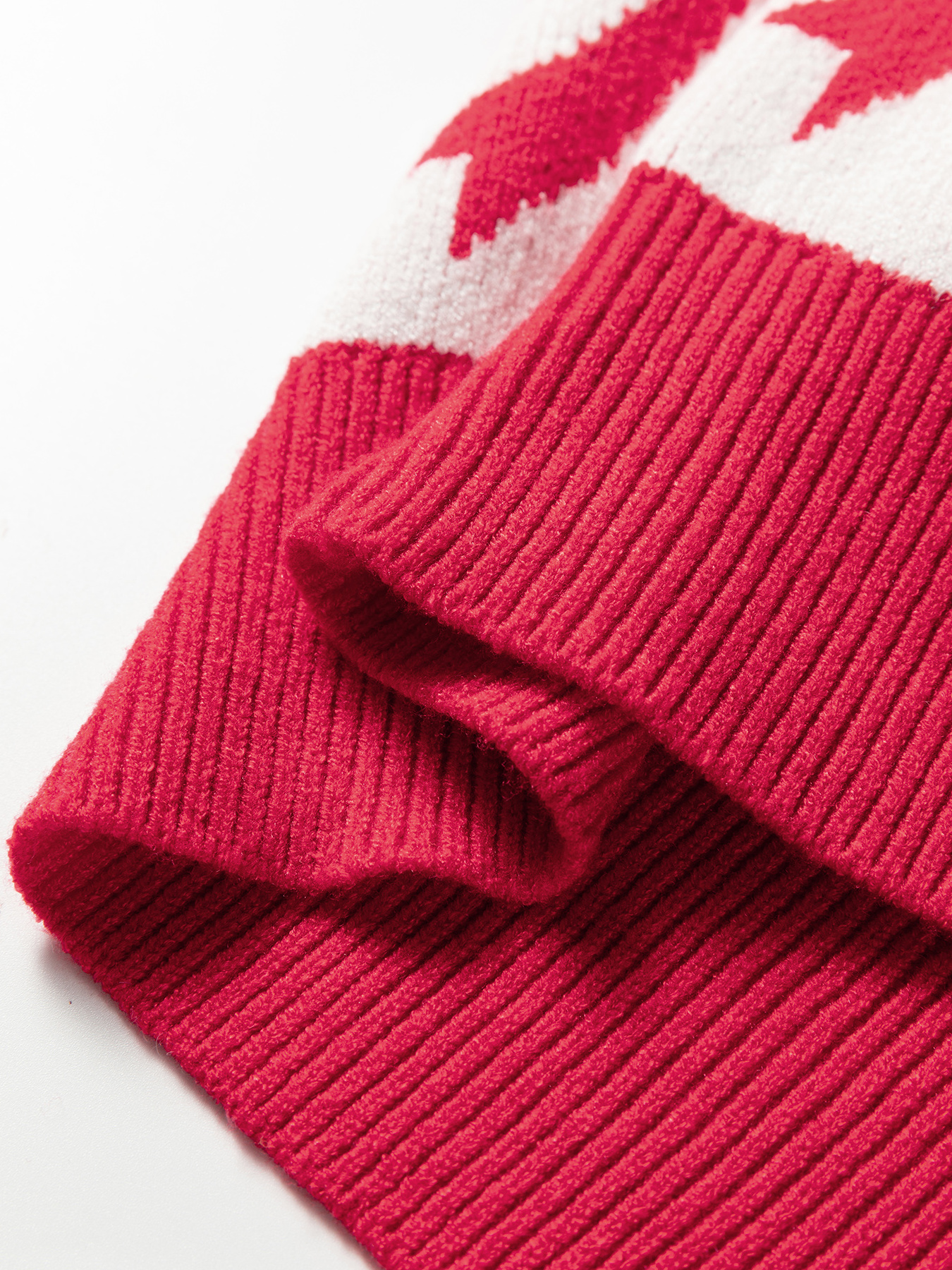 Bow Print 2-Tone Rhombus Knit Loose Sweater