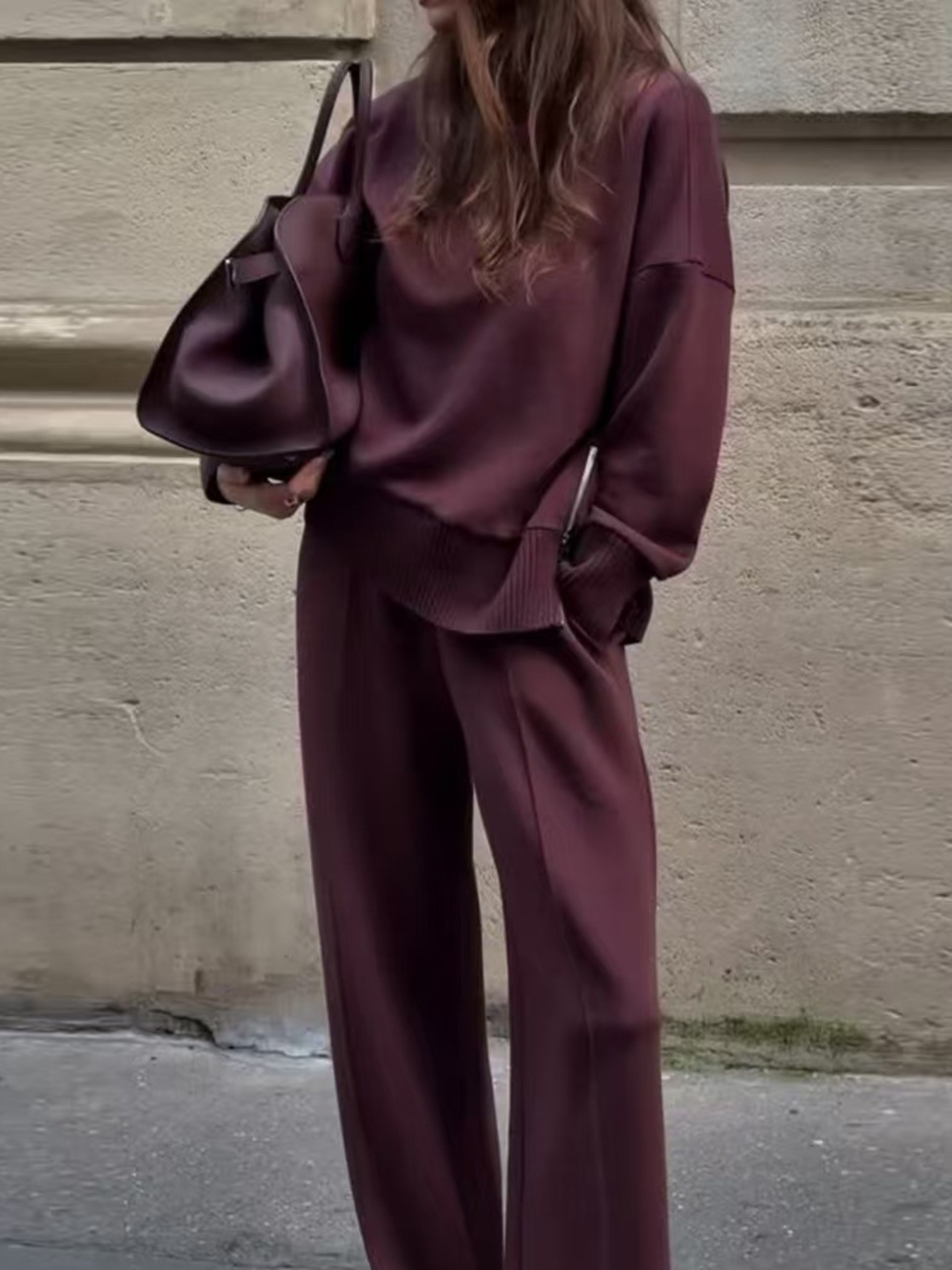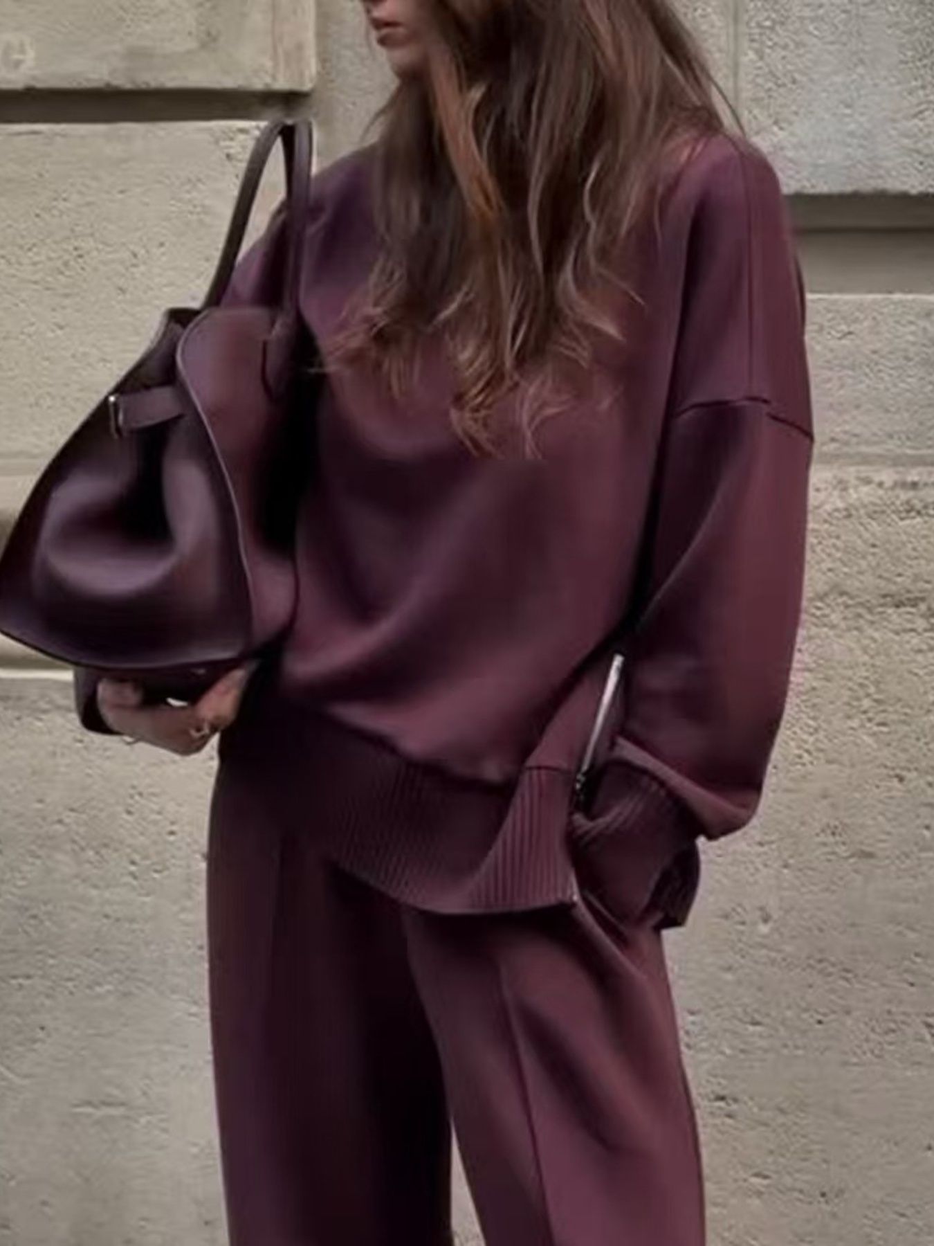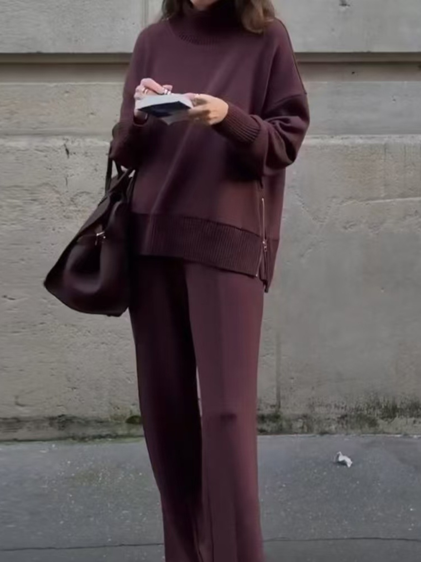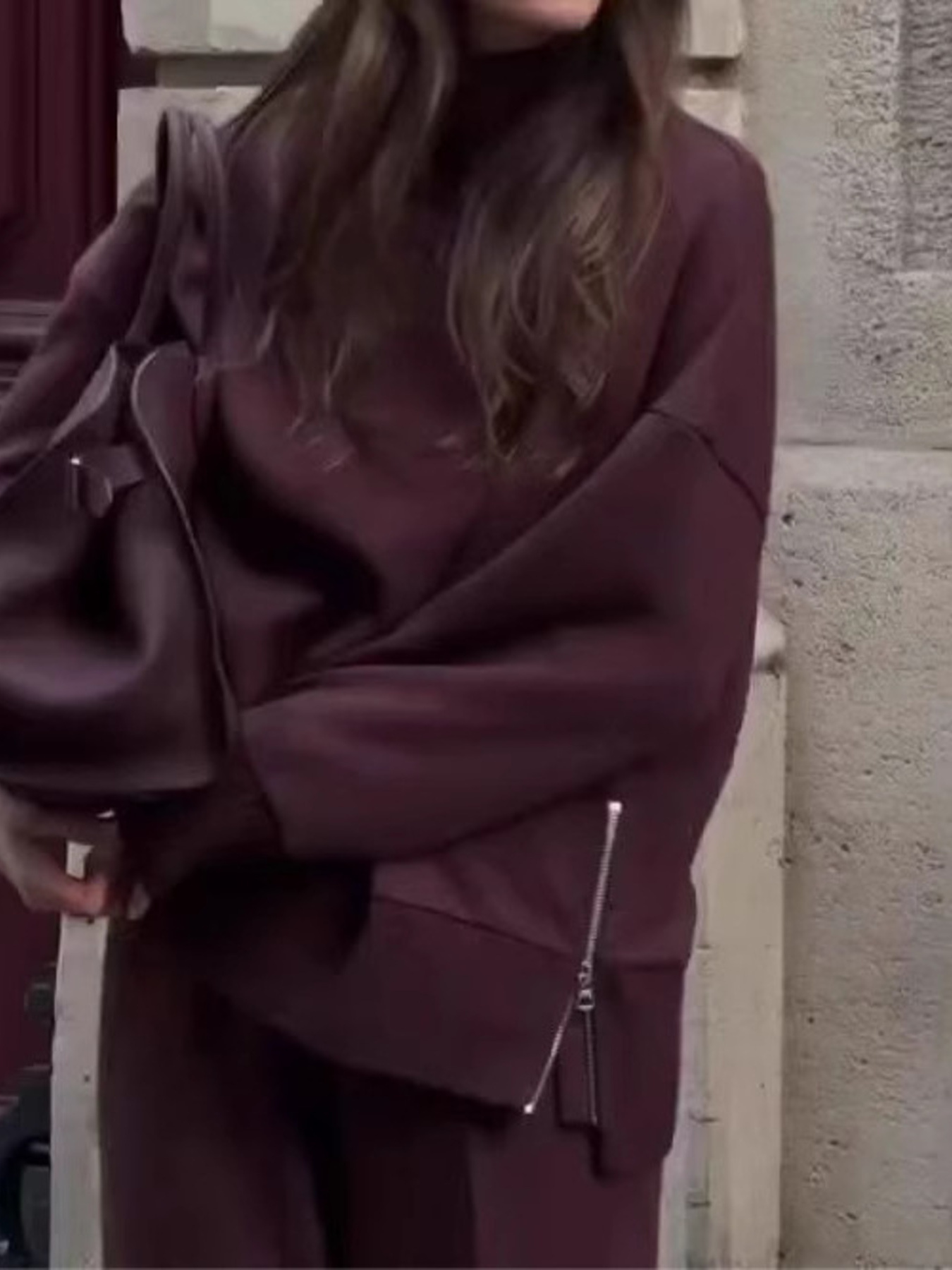 Turtleneck Side Zipper Sweatshirt And Pants Set