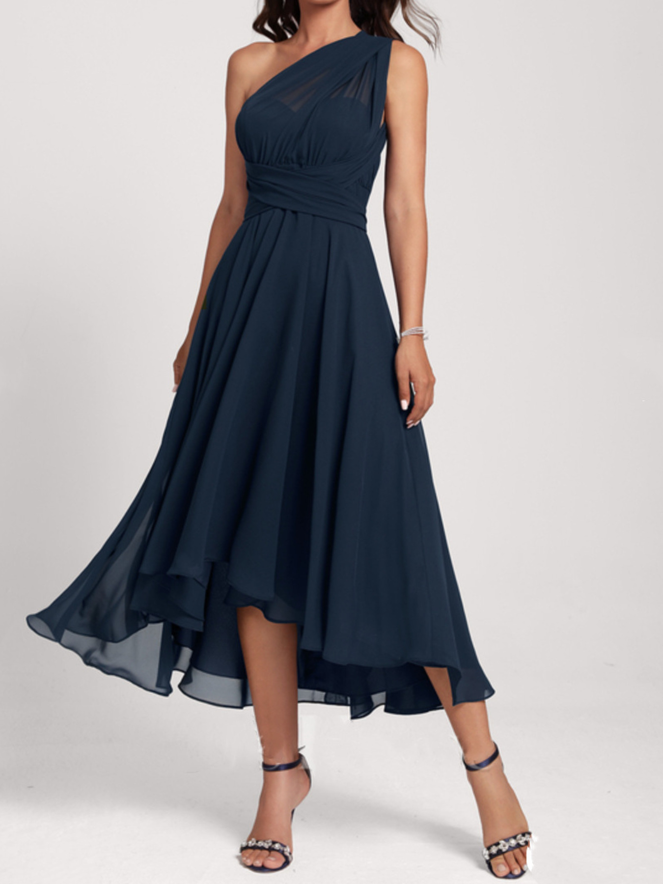Ruched A-Line Midi Dress