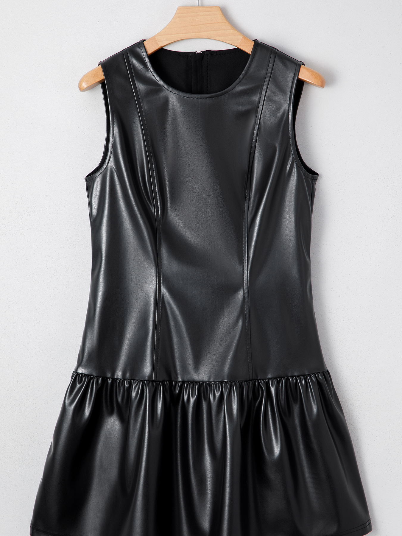 Faux Leather Ruffle Hem Sleeveless Mini Dress