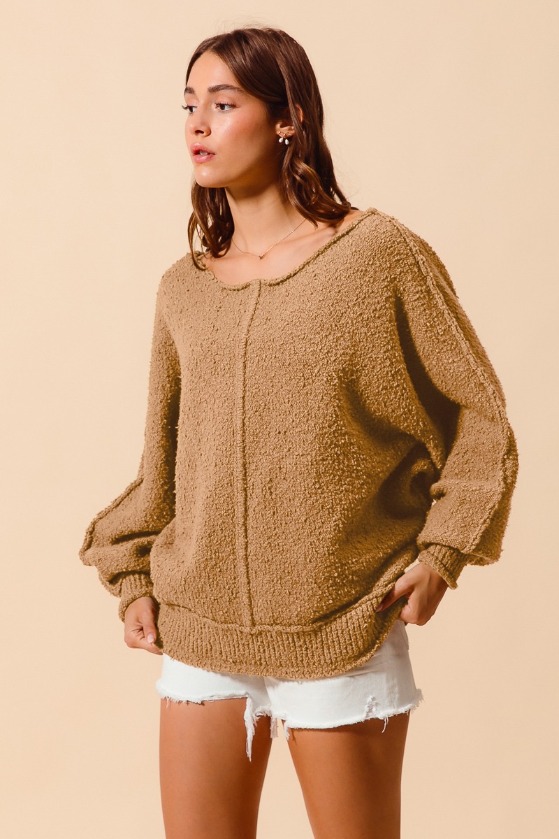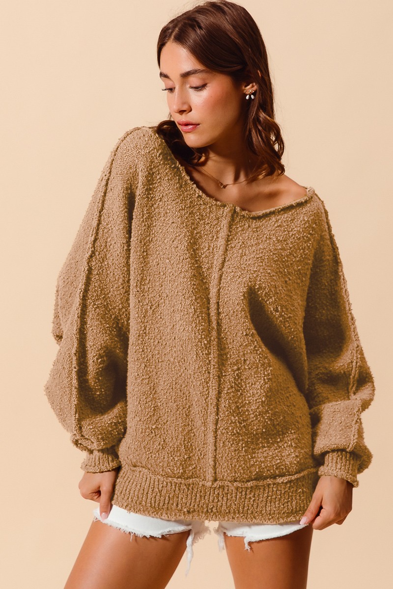So Me Loose Fit Exposed Seam Slouchy Boucle Sweater