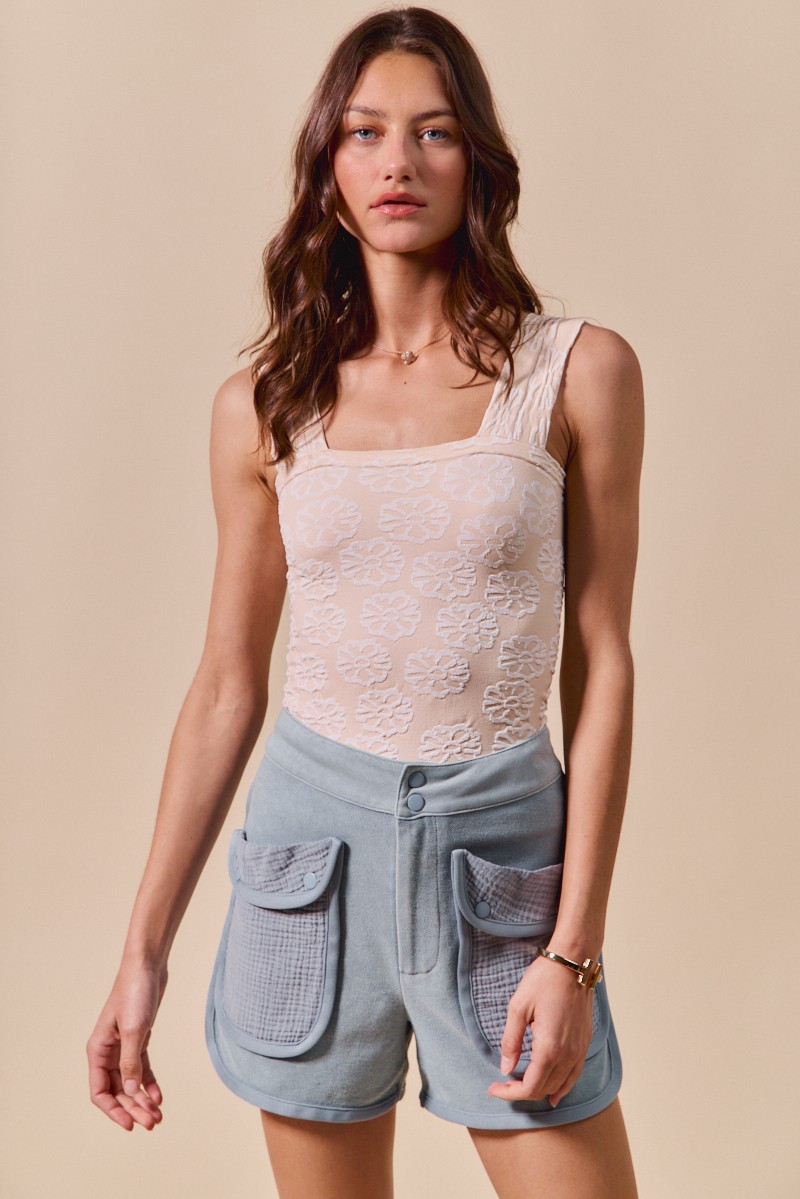So Me Mineral Washed Terry High Rise Cargo Shorts