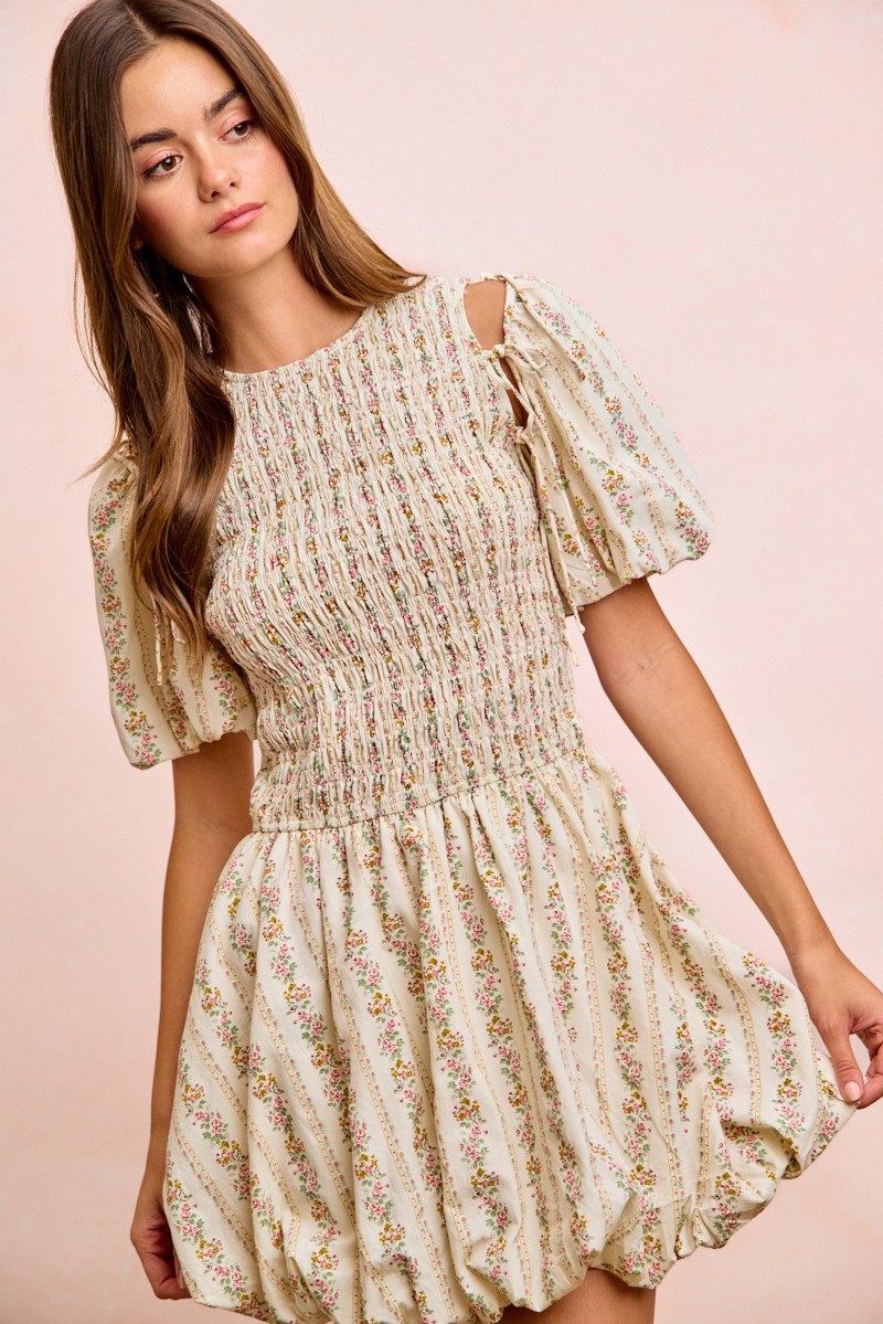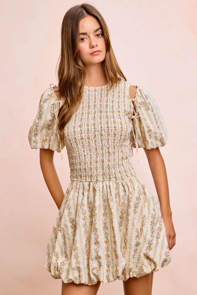 Bibi Floral Bow Tie Attachable Puff Sleeves Dress